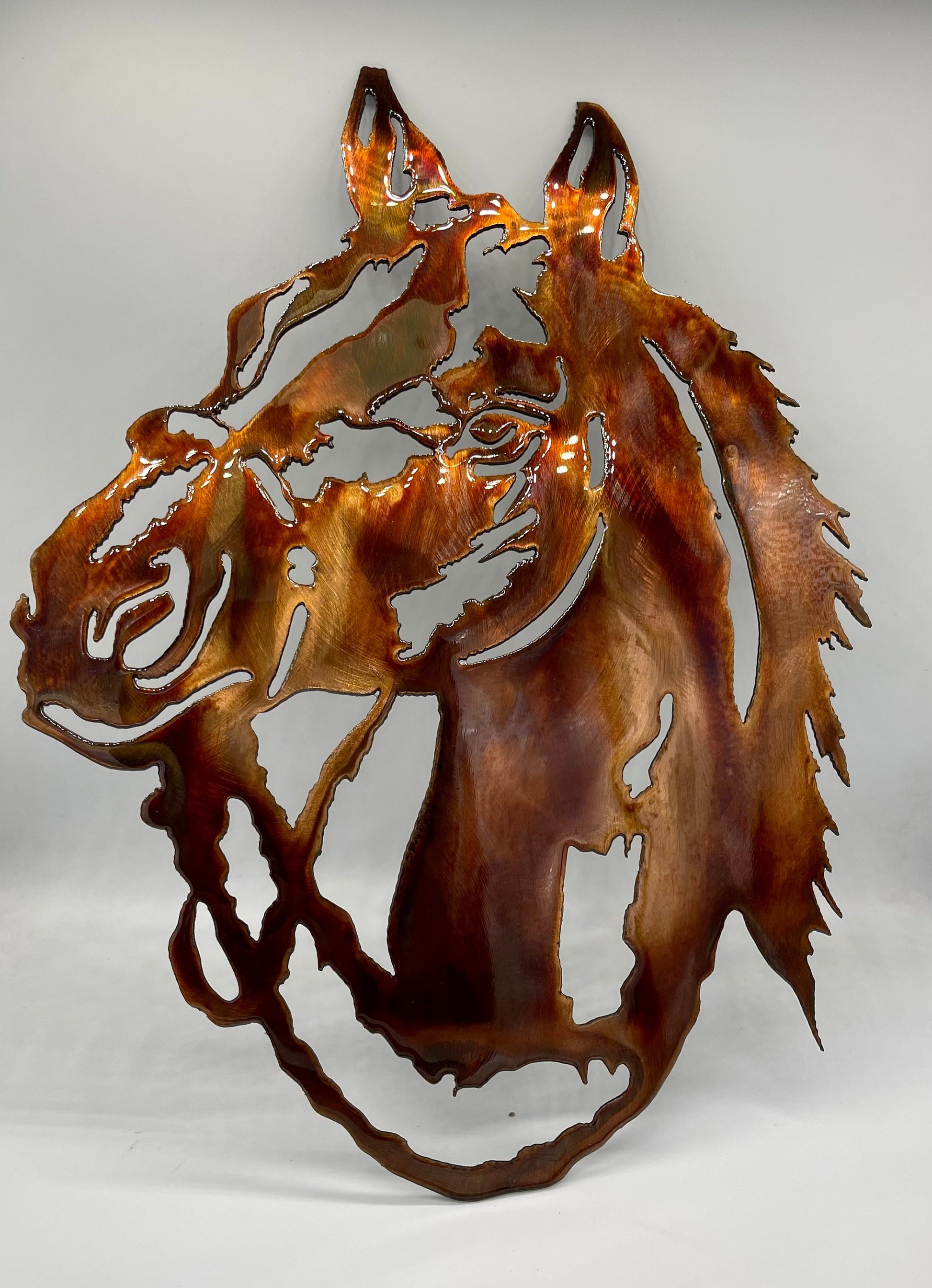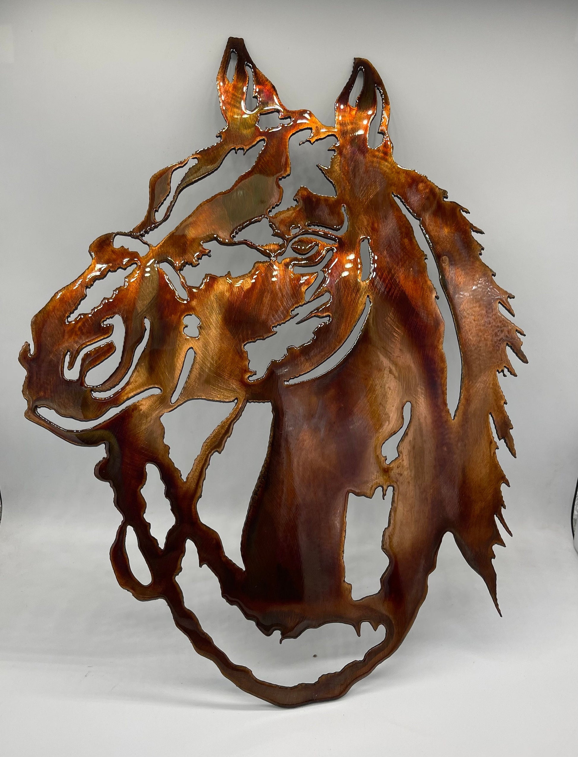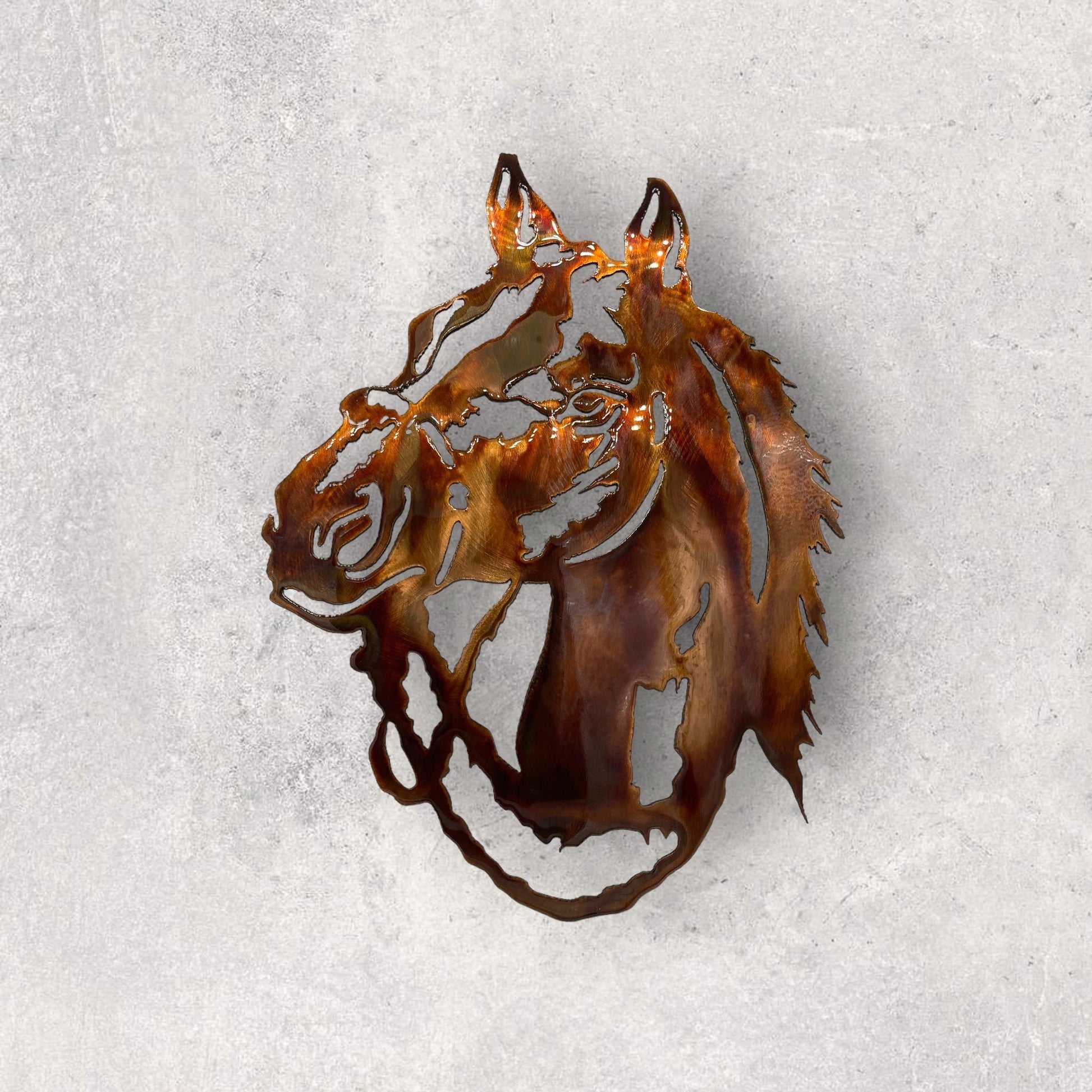 Add a touch of majestic charm to your home decor with our exquisite 14" tall horse head sculpture featuring reins. Crafted with meticulous attention to detail, this piece captures the grace and power of these magnificent animals.