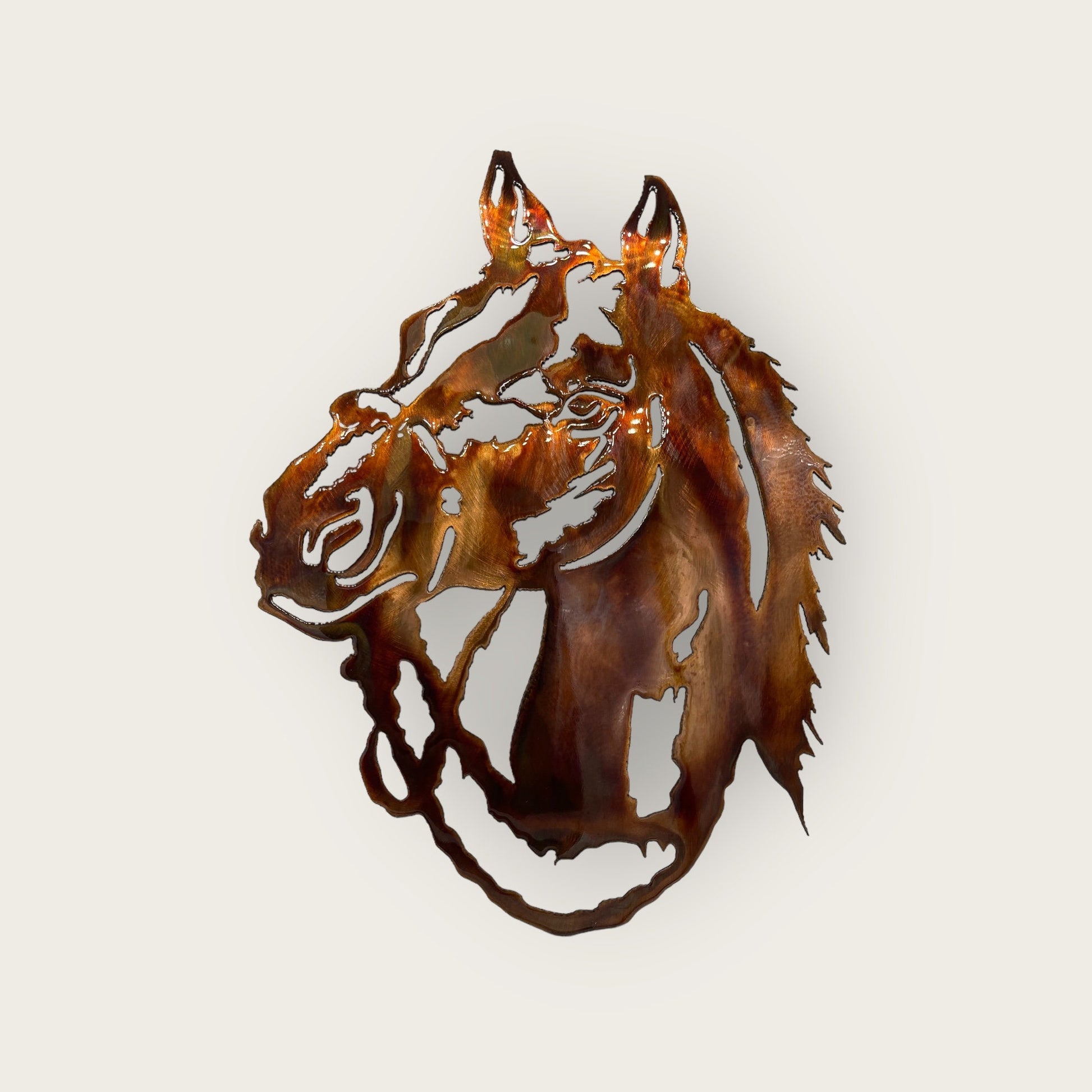 Graceful Horse Head: 14" Tall Sculpture with Reins