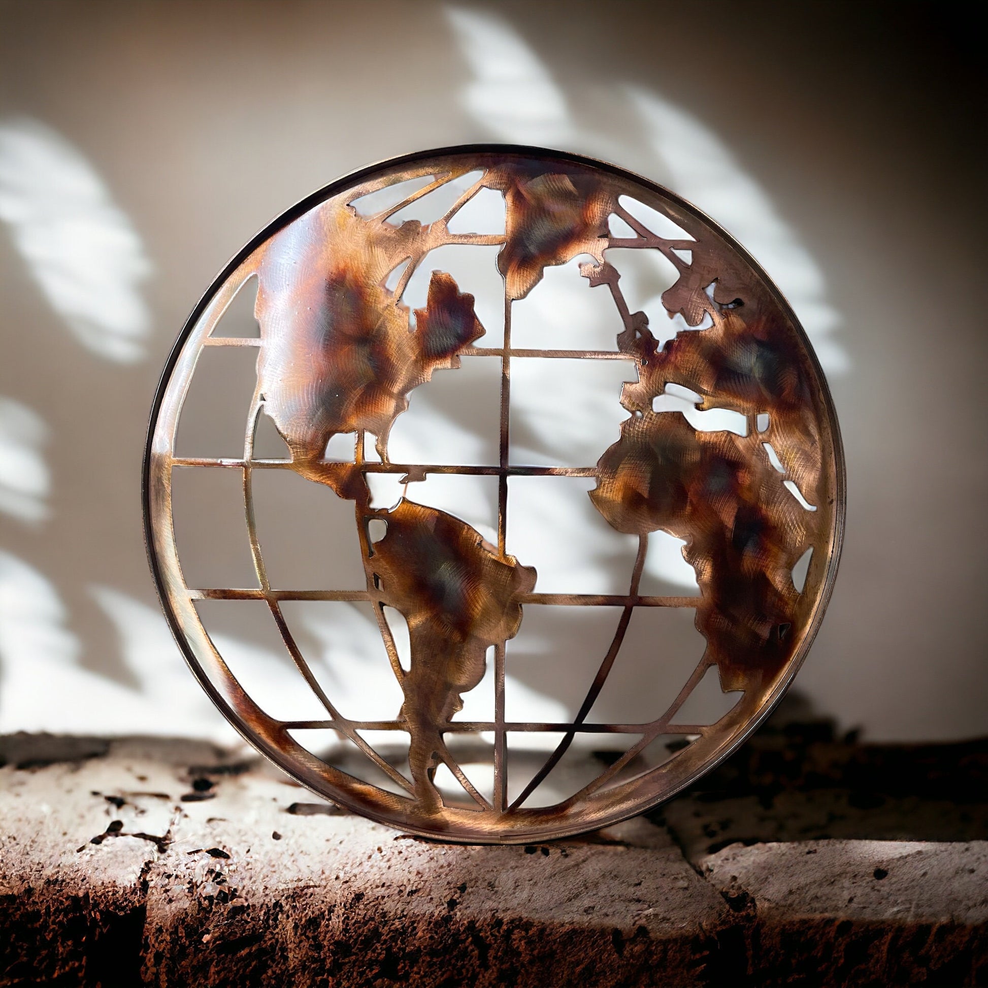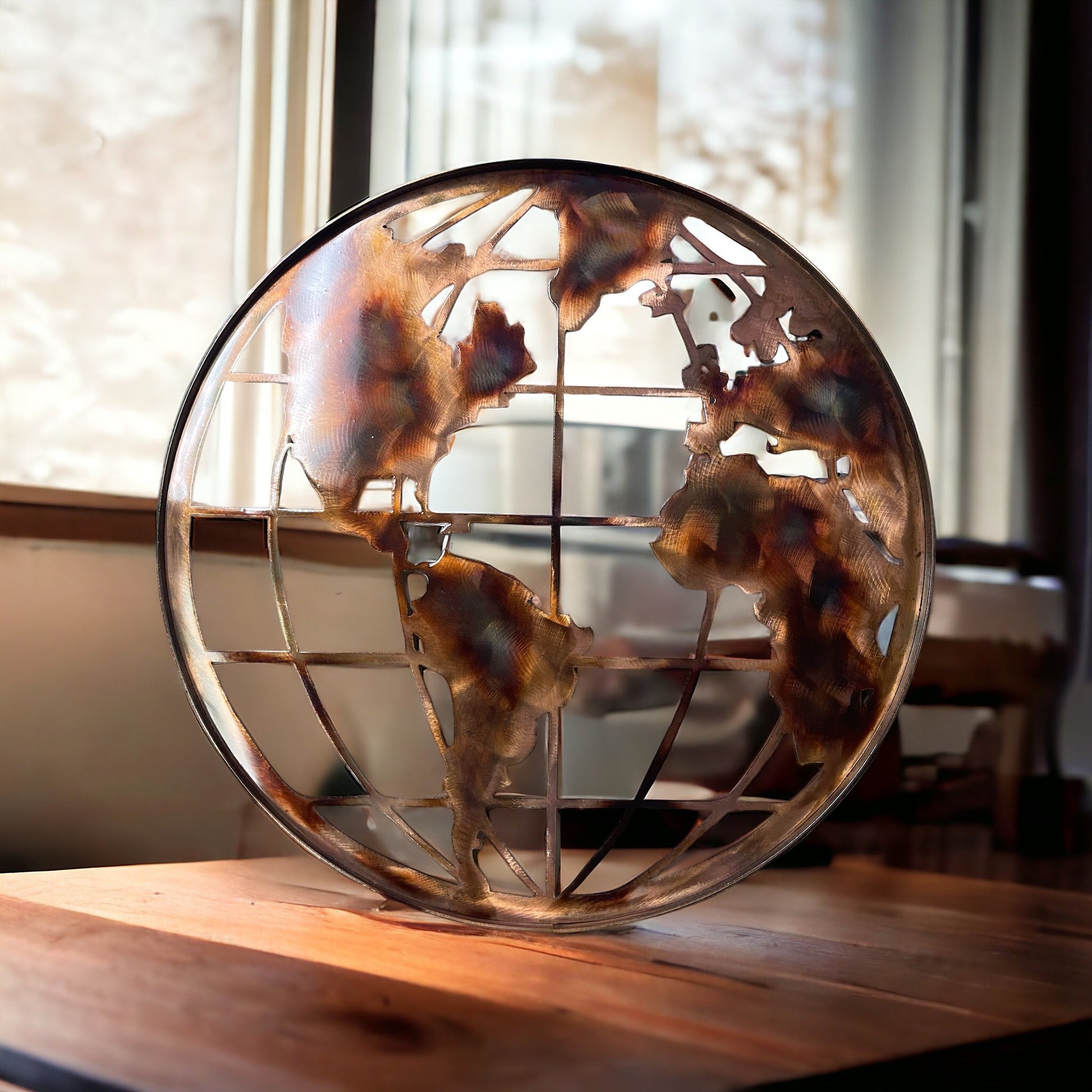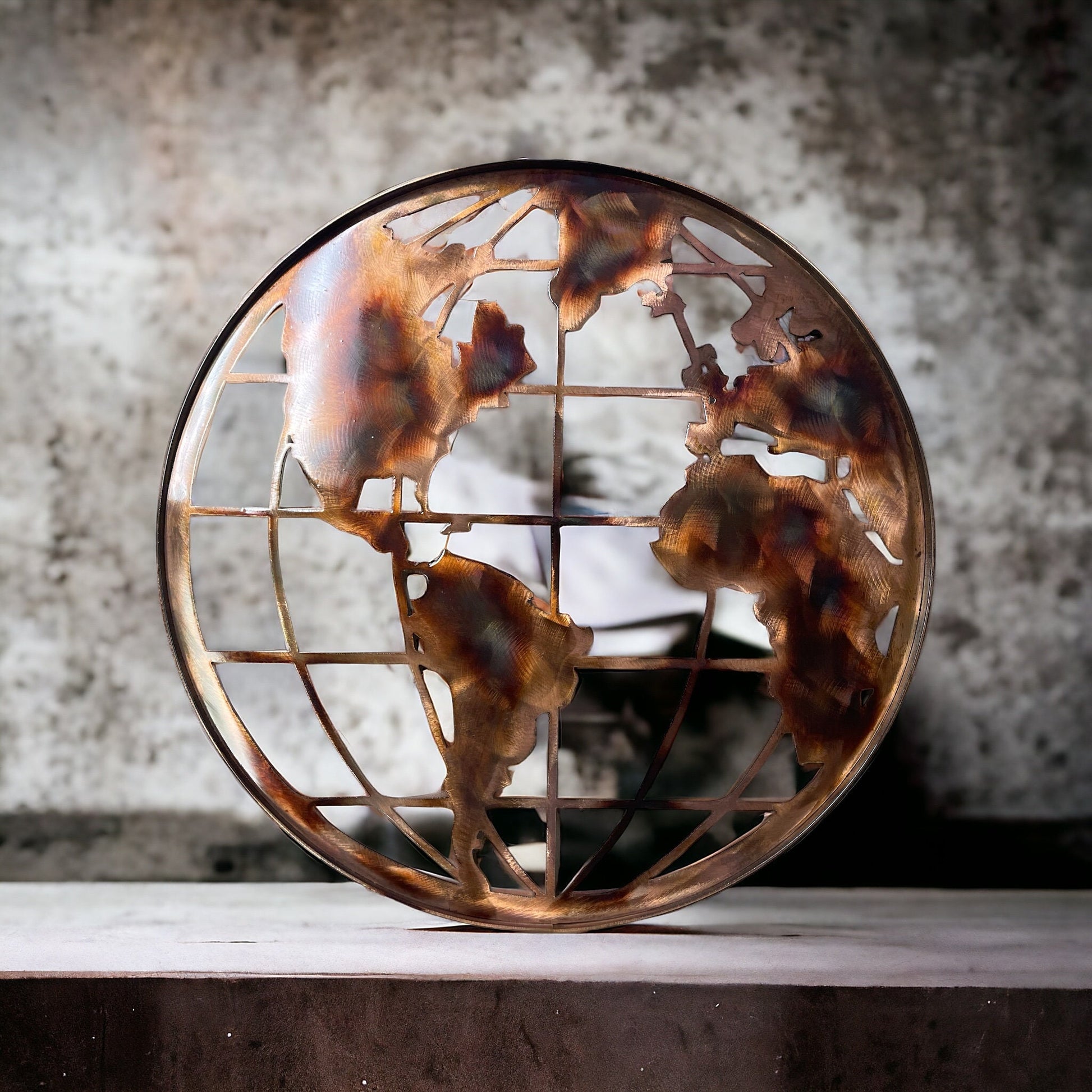 Handcrafted copper and bronzed plated world globe