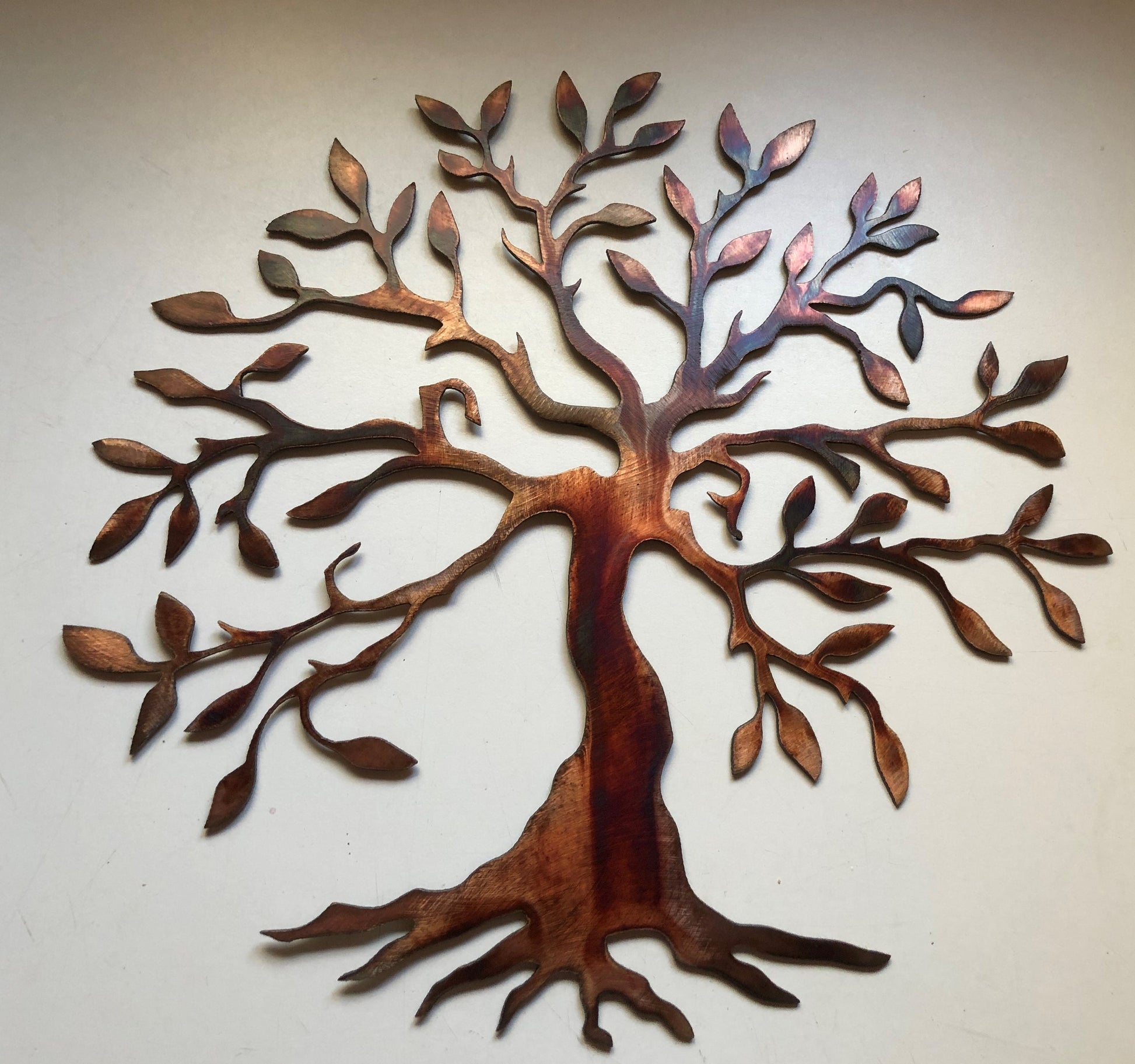 This stunning olive tree/tree of life sculpture is meticulously handcrafted in the USA, making it a truly unique and one-of-a-kind piece of art. The sculpture is made from steel and expertly copper/bronze plated, resulting in a beautiful finish that catches light from different angles.