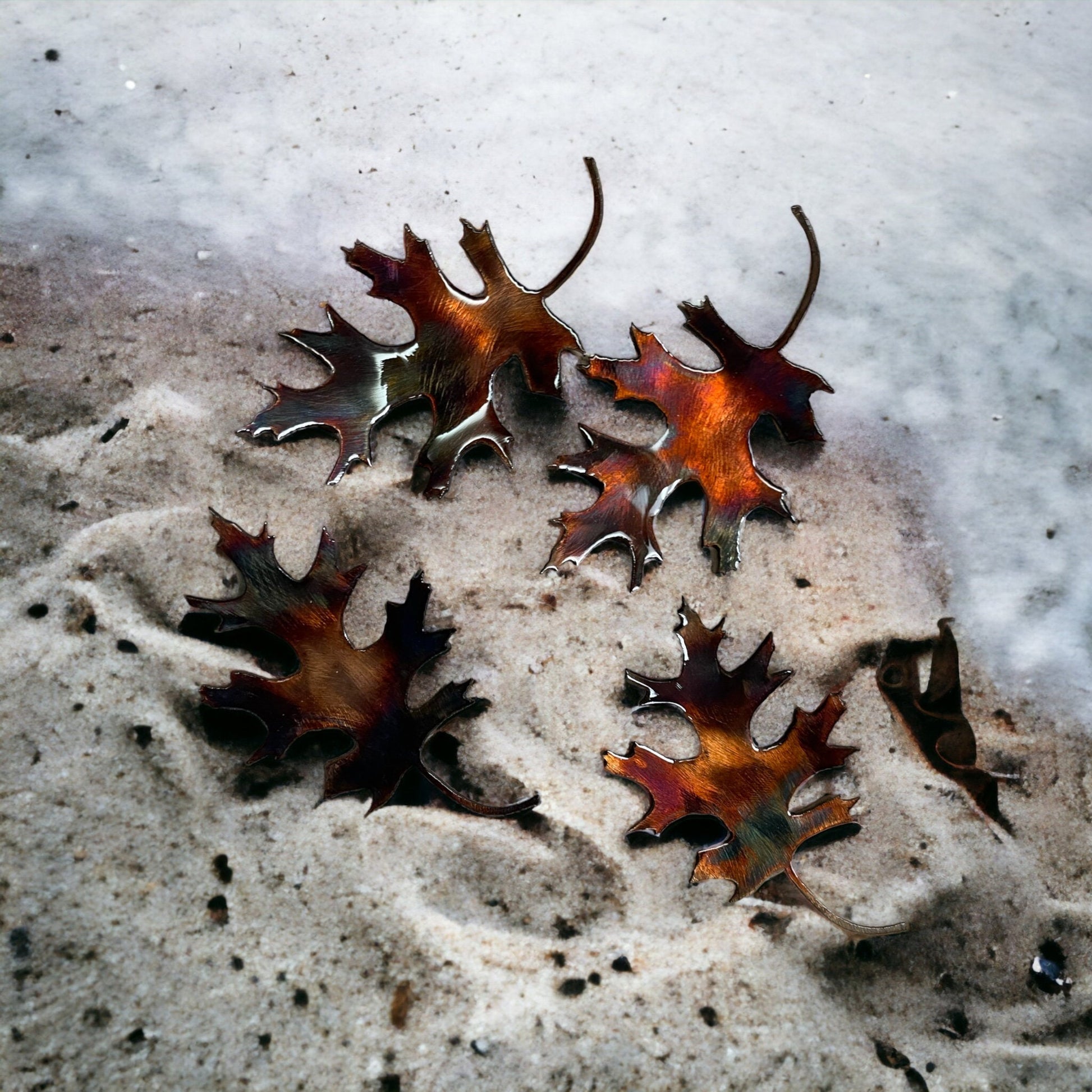 Handcrafted Metal Oak Leaves - Rustic Copper/Bronze Finish - Single Leaf - Natural Look - Tabletop Décor