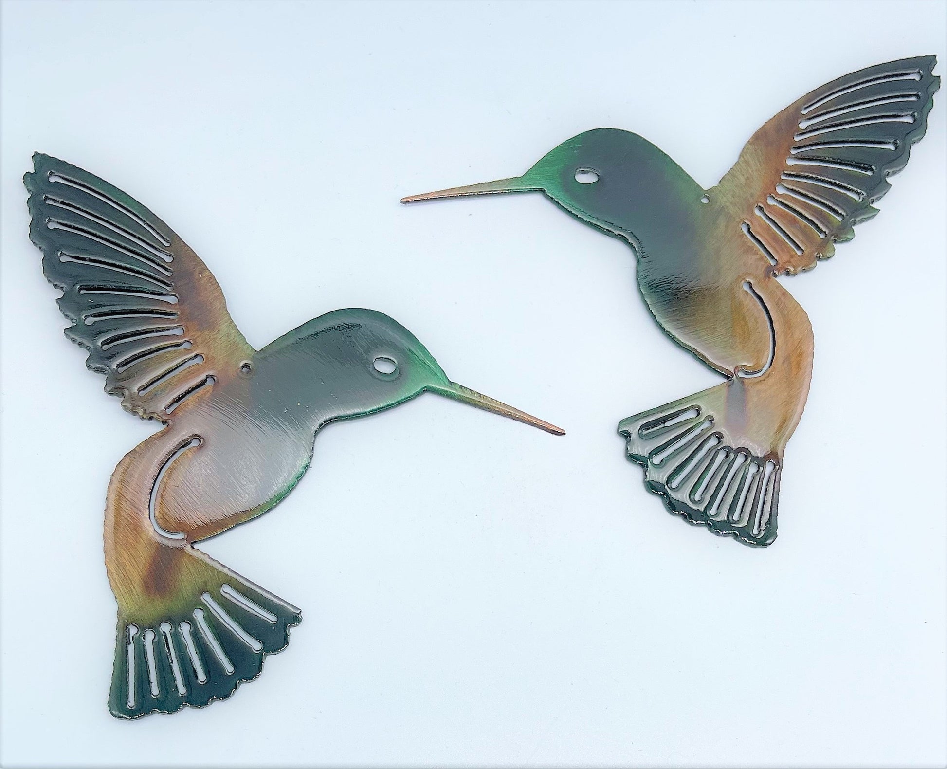 Hummingbird Autumn Green Pair Metal Wall Art Décor 12" x 12" each