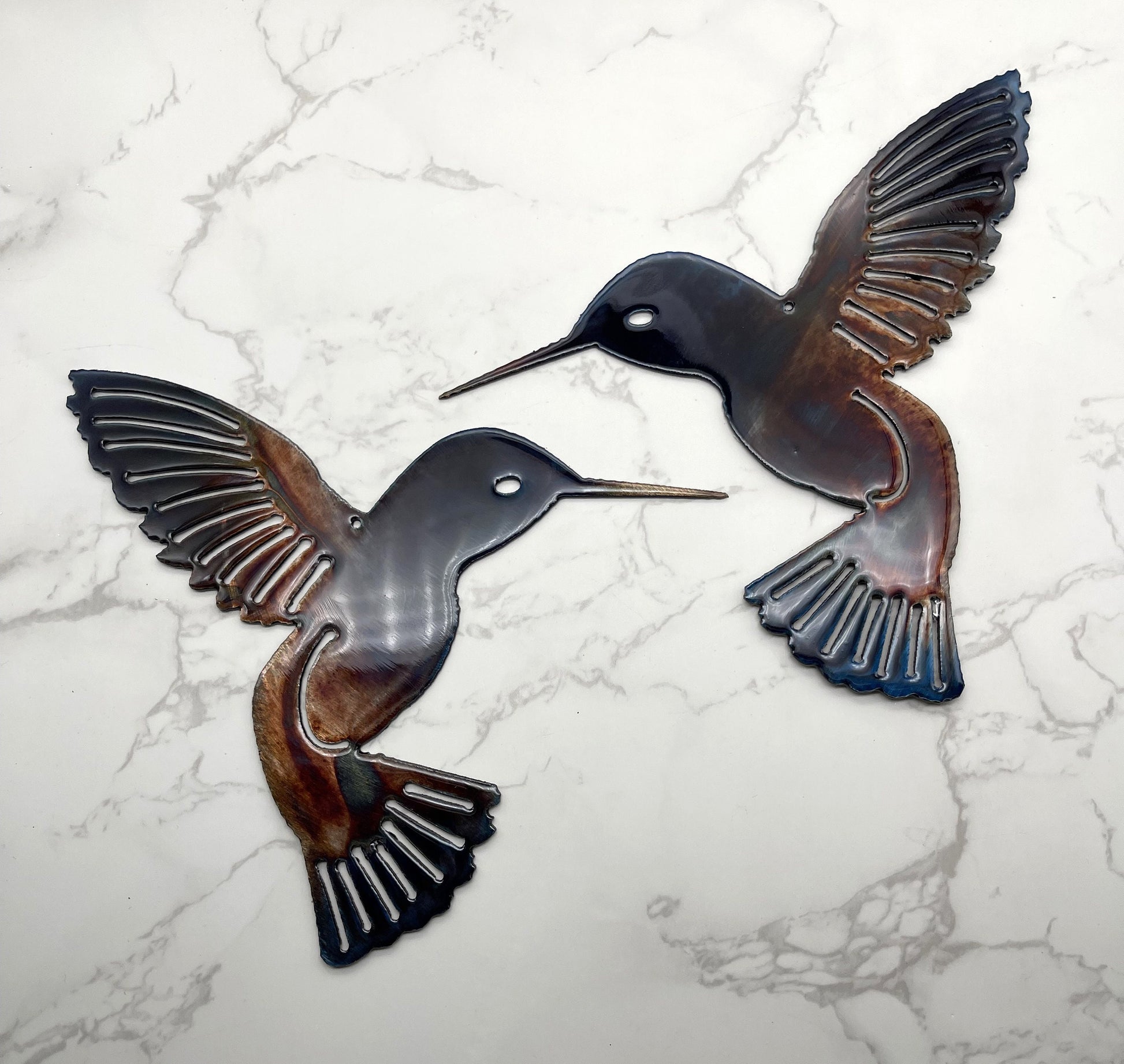 Hummingbird Blue Tinged Copper Pair Metal Wall Art Décor 6" x 6" each