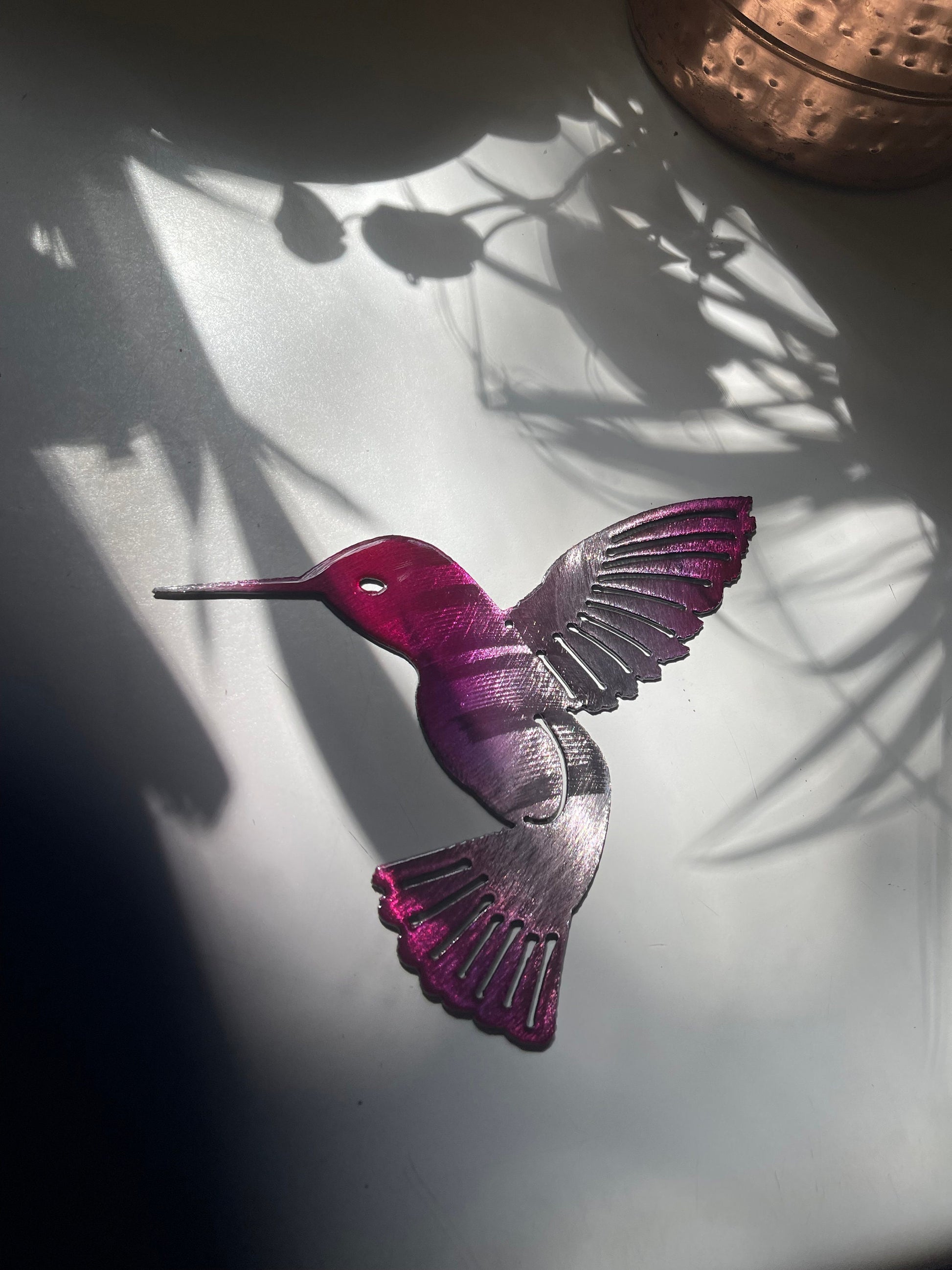 Hummingbird Fuchsia Tainted Pair Metal Wall Art Décor 6" x 6" each