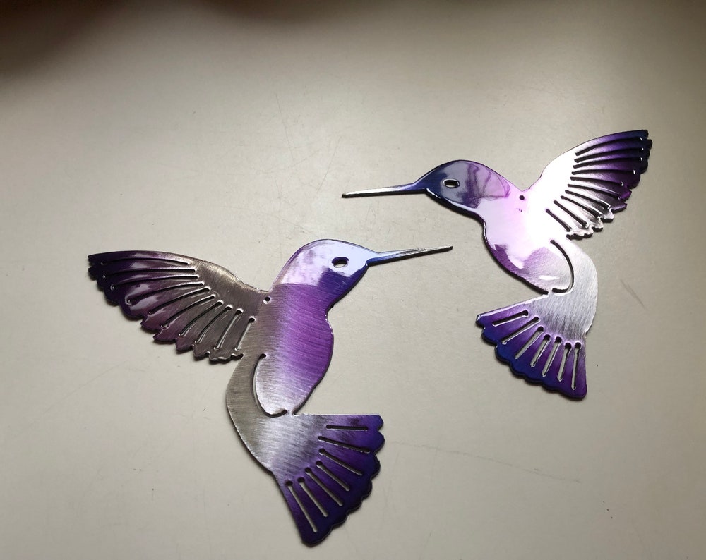 Hummingbird Purple Tinged Pair Metal Wall Art Decor