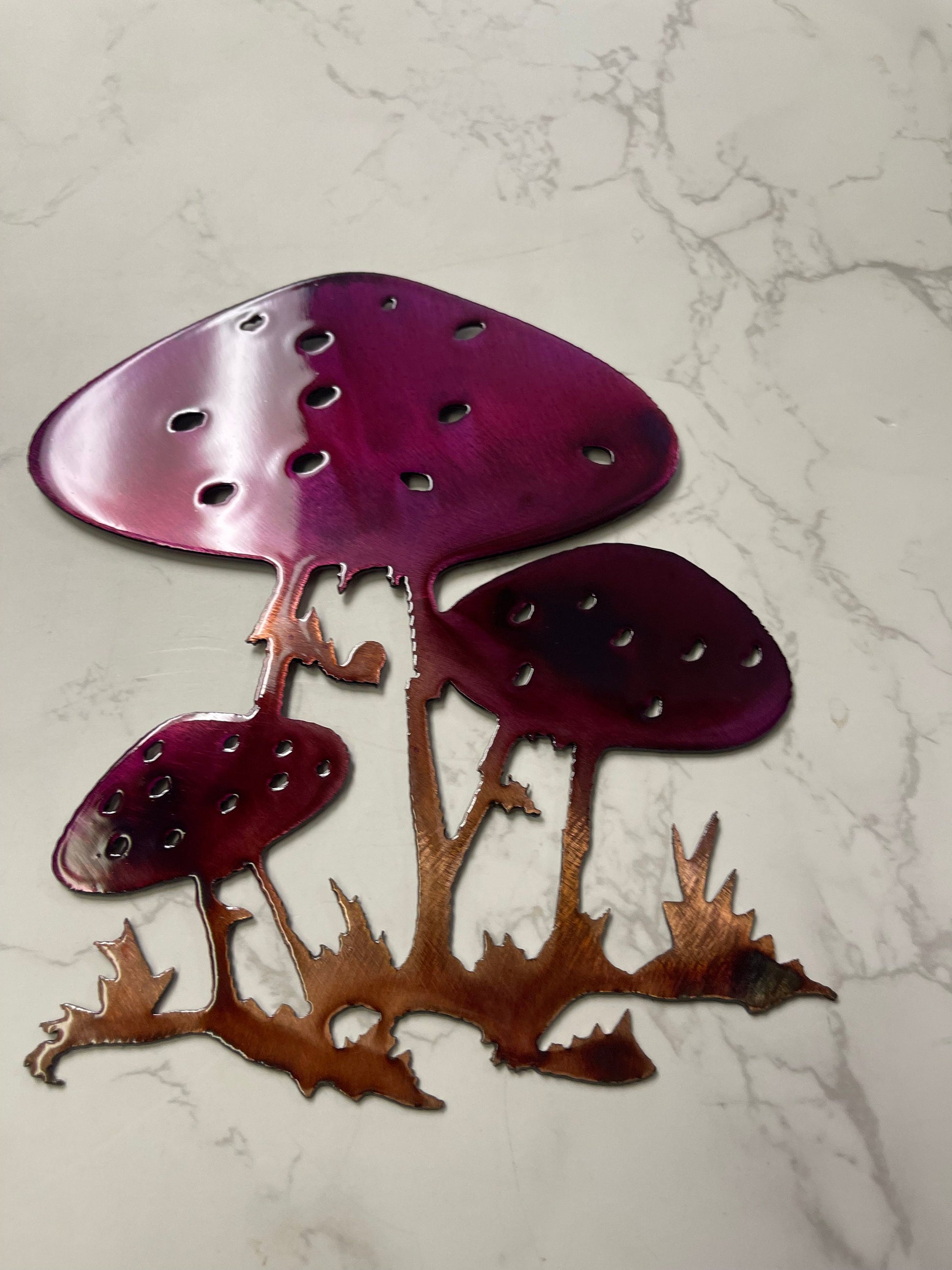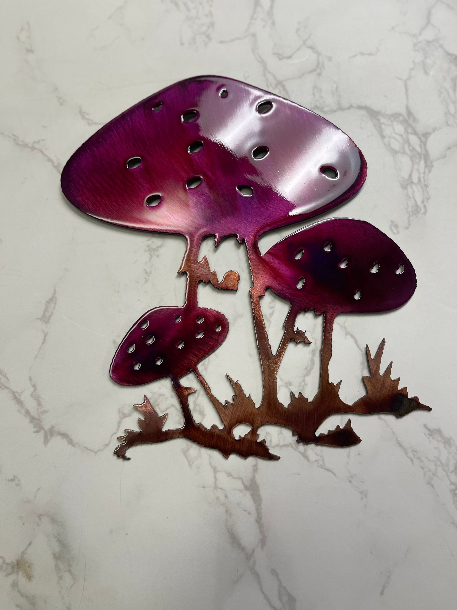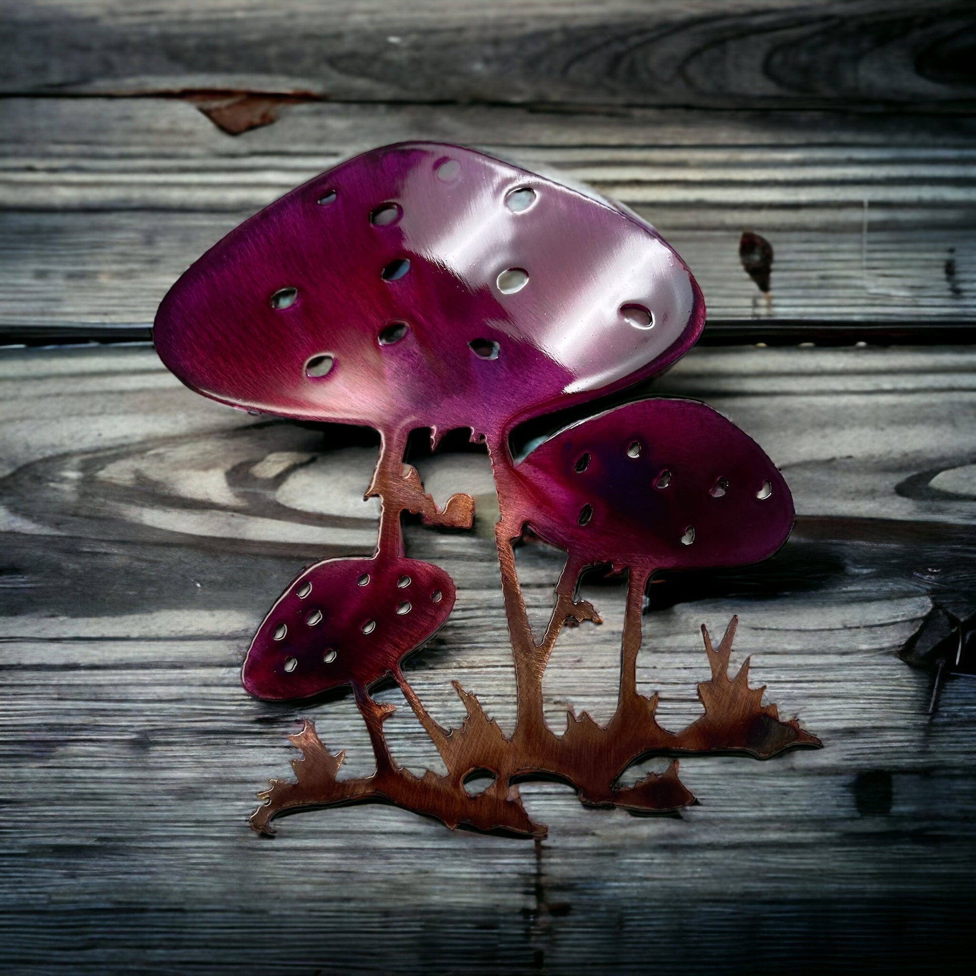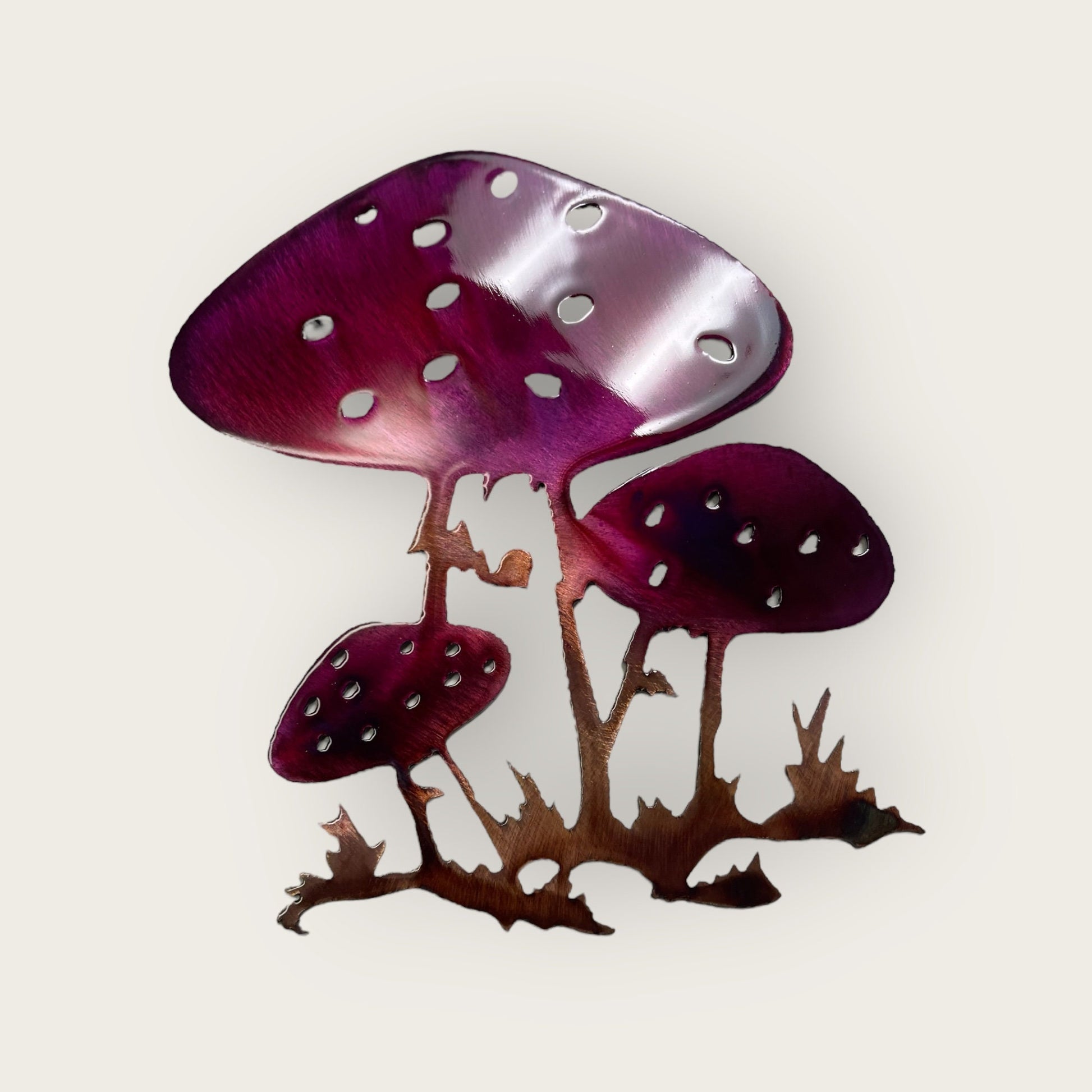 Mushroom Metal Wall Art in Copper and Bronzed with a Lavishly Purple-Tinged Finish