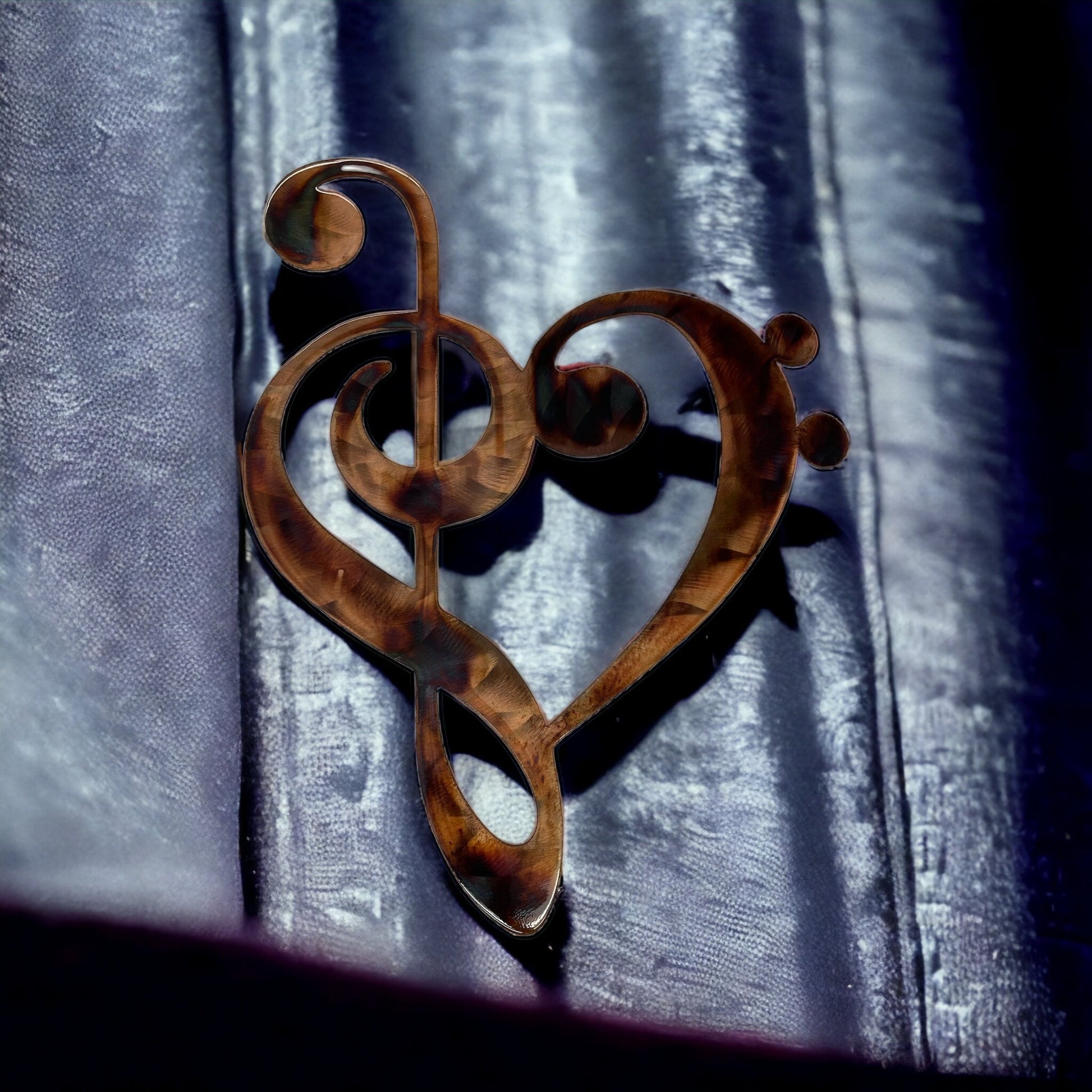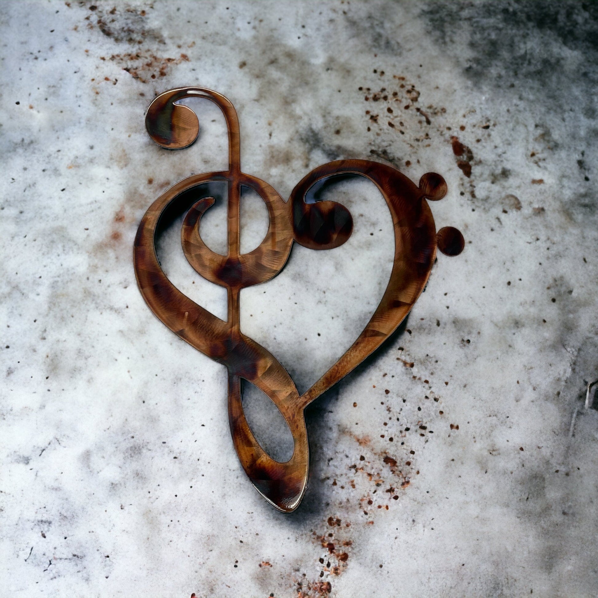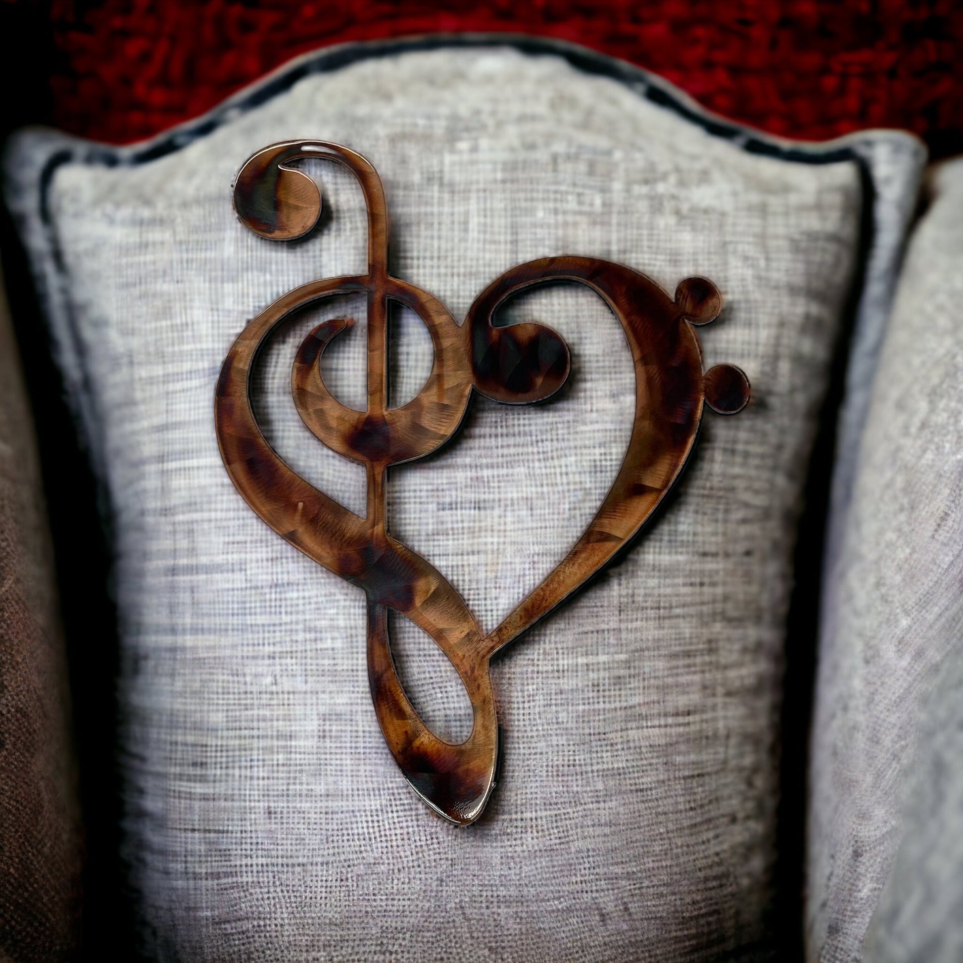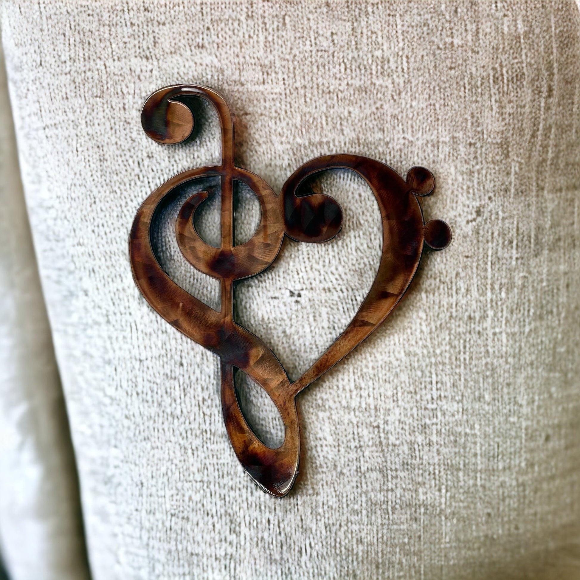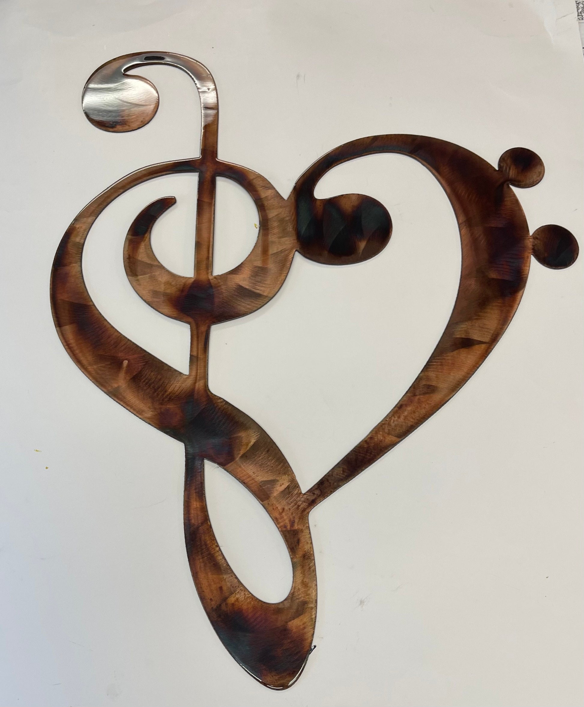 Musical Note Clef Heart Metal Wall Art Style 2 choose 9" tall, 13" tall or 22" tall - Copper & Bronze Plated