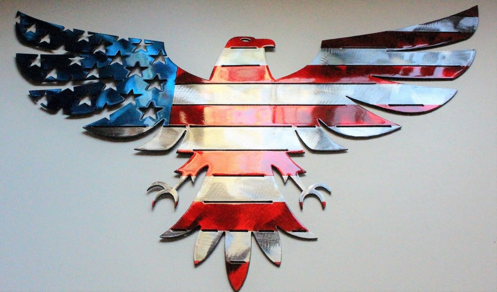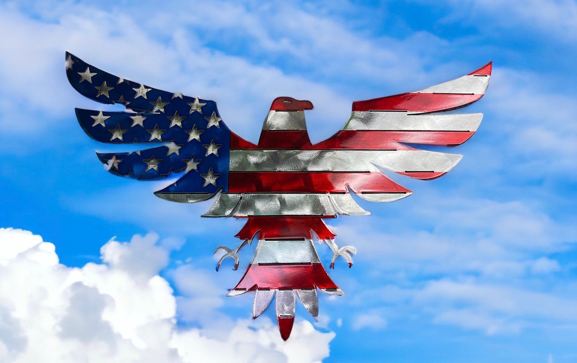 Embrace the spirit of America with this exceptional metal wall art from Heaven's Gate Metal Works. Purchase your own Patriotic American Bald Eagle today and bring a touch of patriotism to your space!