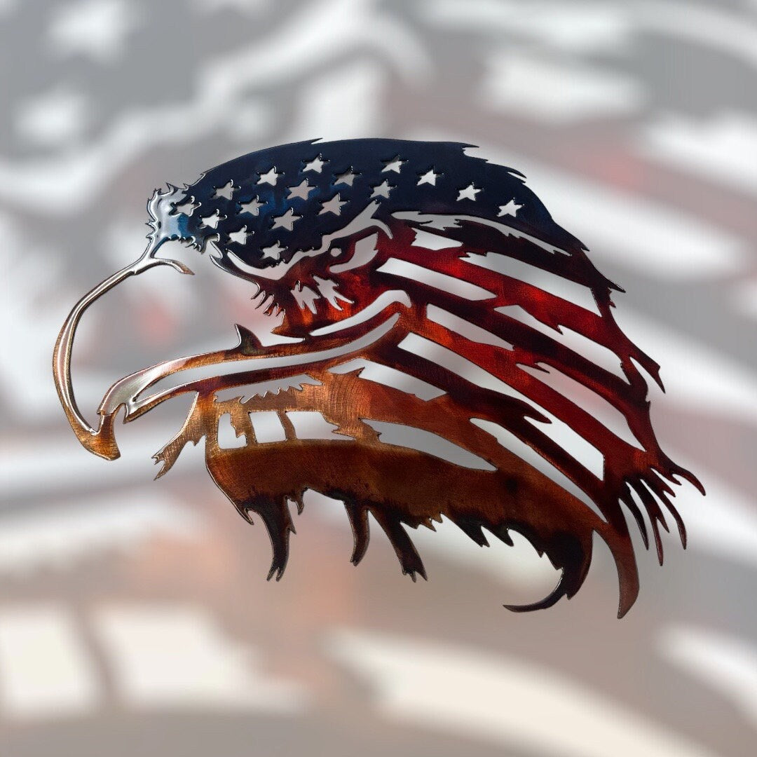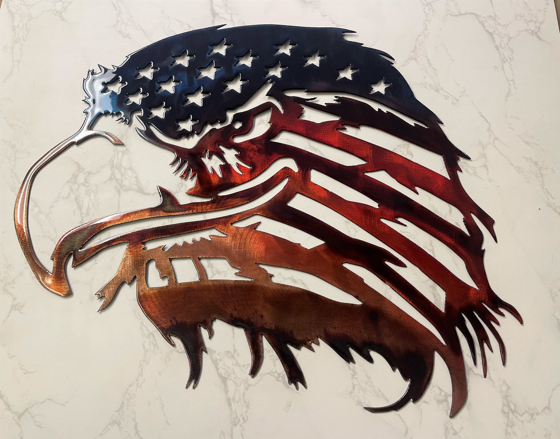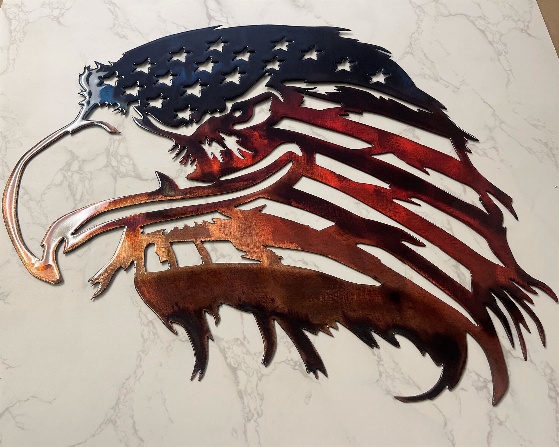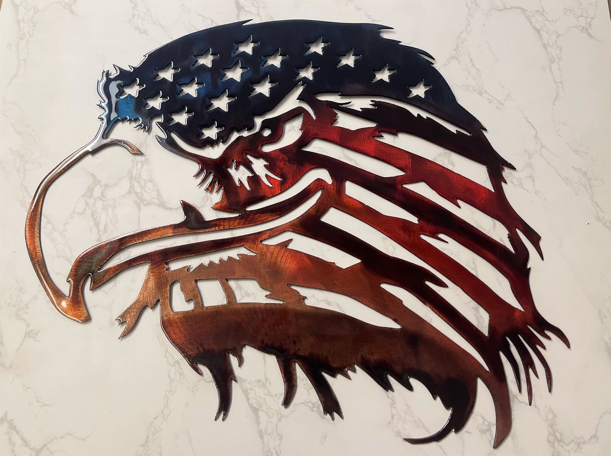 Introducing our extraordinary Patriotic Eagle Head Stars and Strips metal wall art, now available on Etsy! Handcrafted with utmost care in the USA, this stunning piece showcases the iconic eagle head design, symbolizing strength, freedom, and patriotism.
