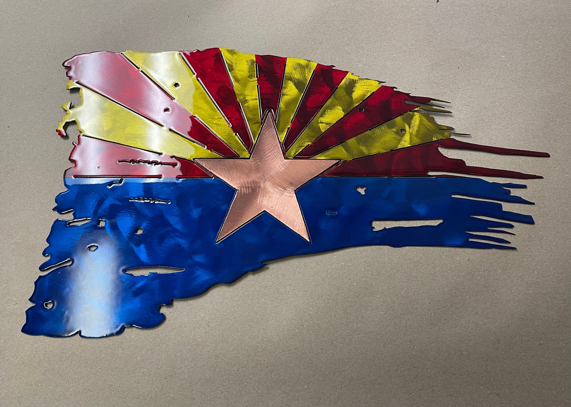 Patriotic Tattered Arizona Flag, Metal Art, Metal Wall Art, Home Decor, Metal Wall Decor, USA, Steel Flag, Military 22 1/2" Wide or Larger