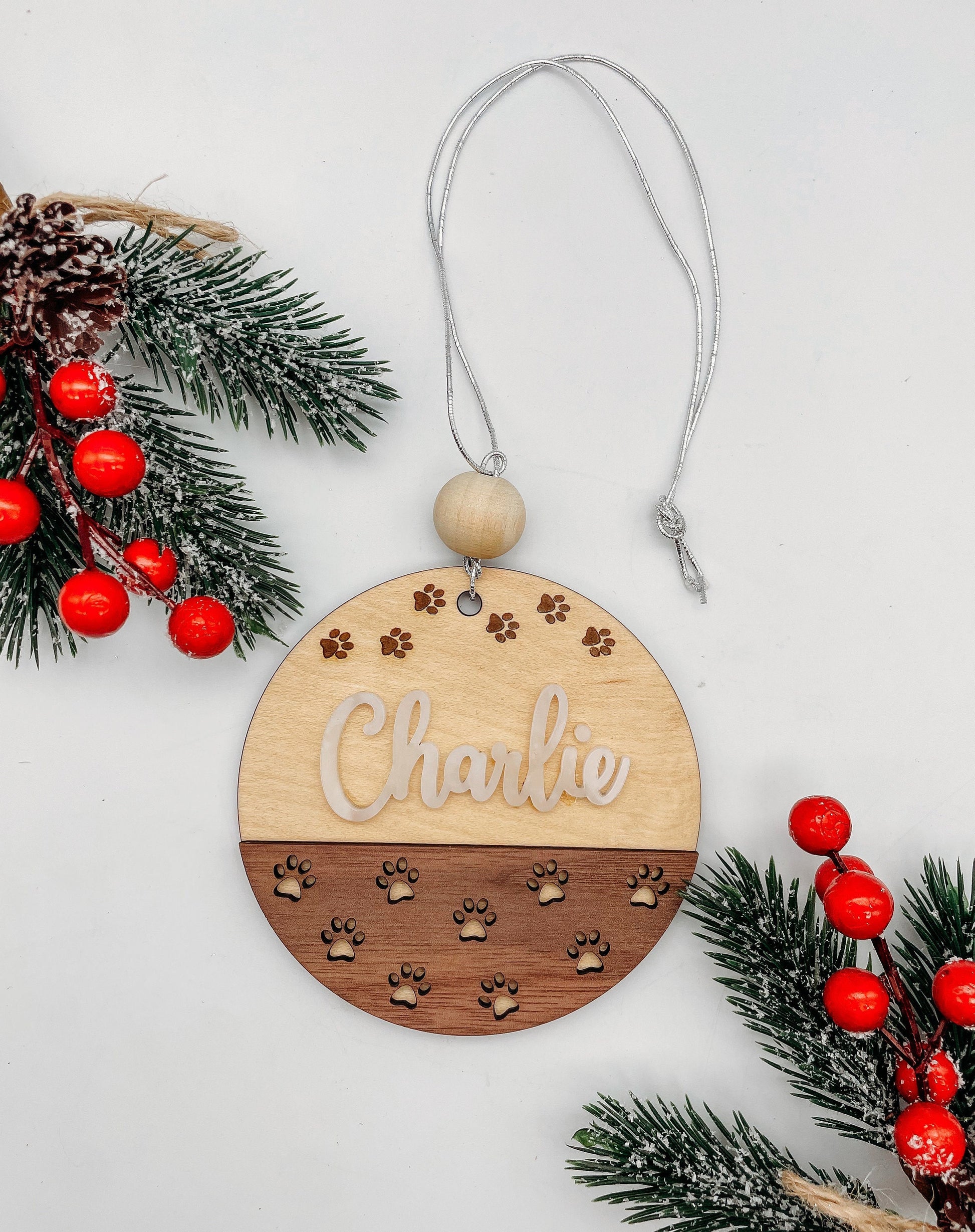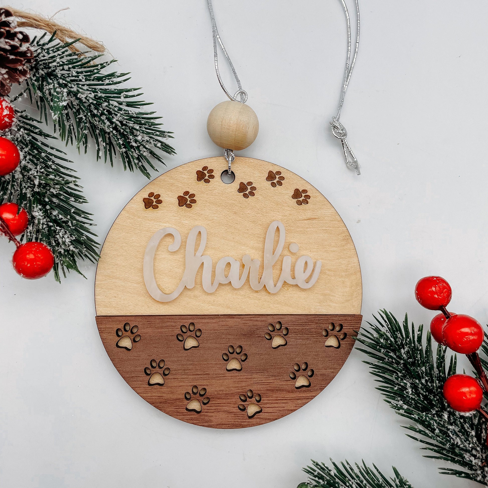 Pet Ornament - Personalized | 2 layer paw print cat or dog