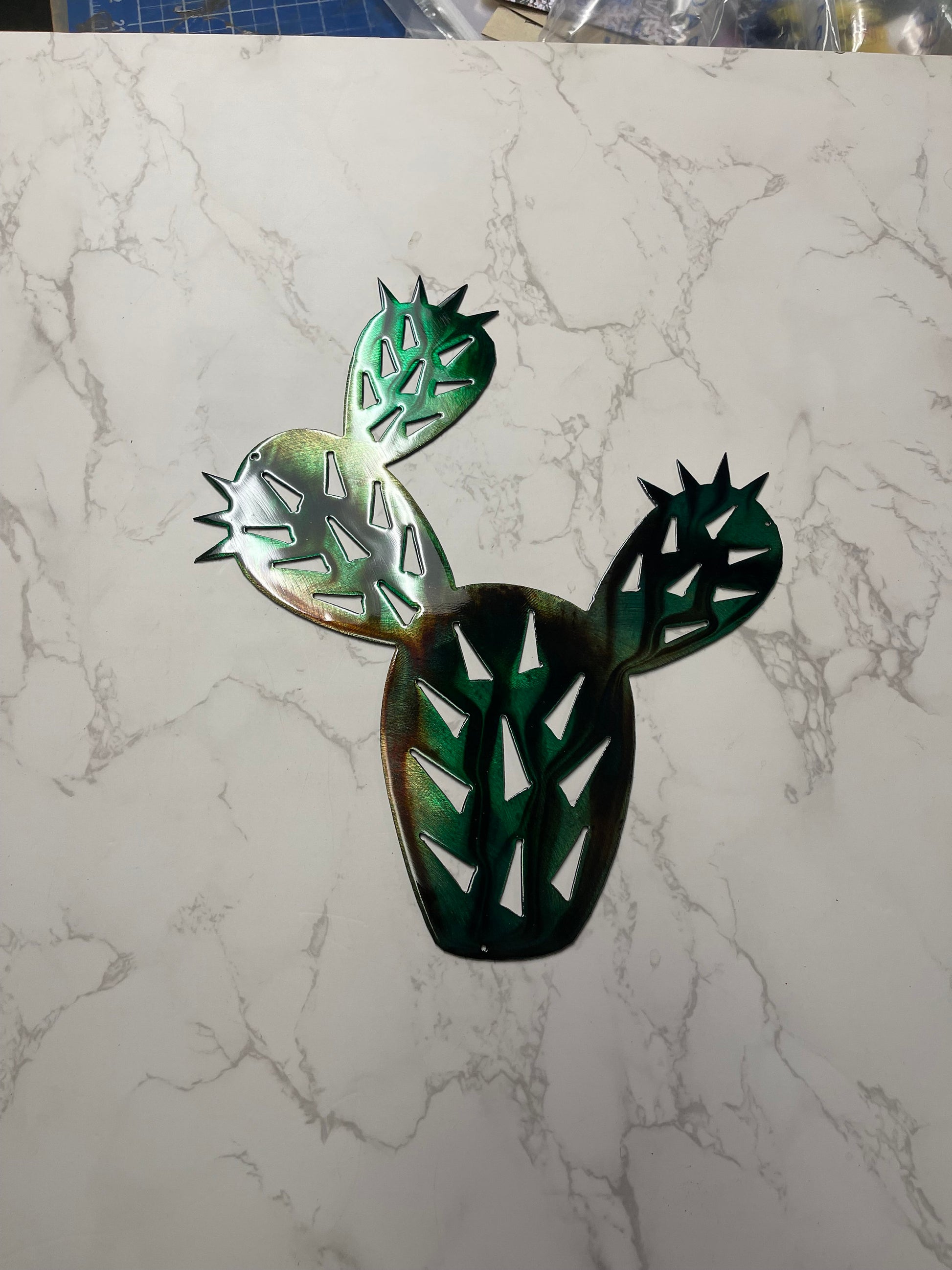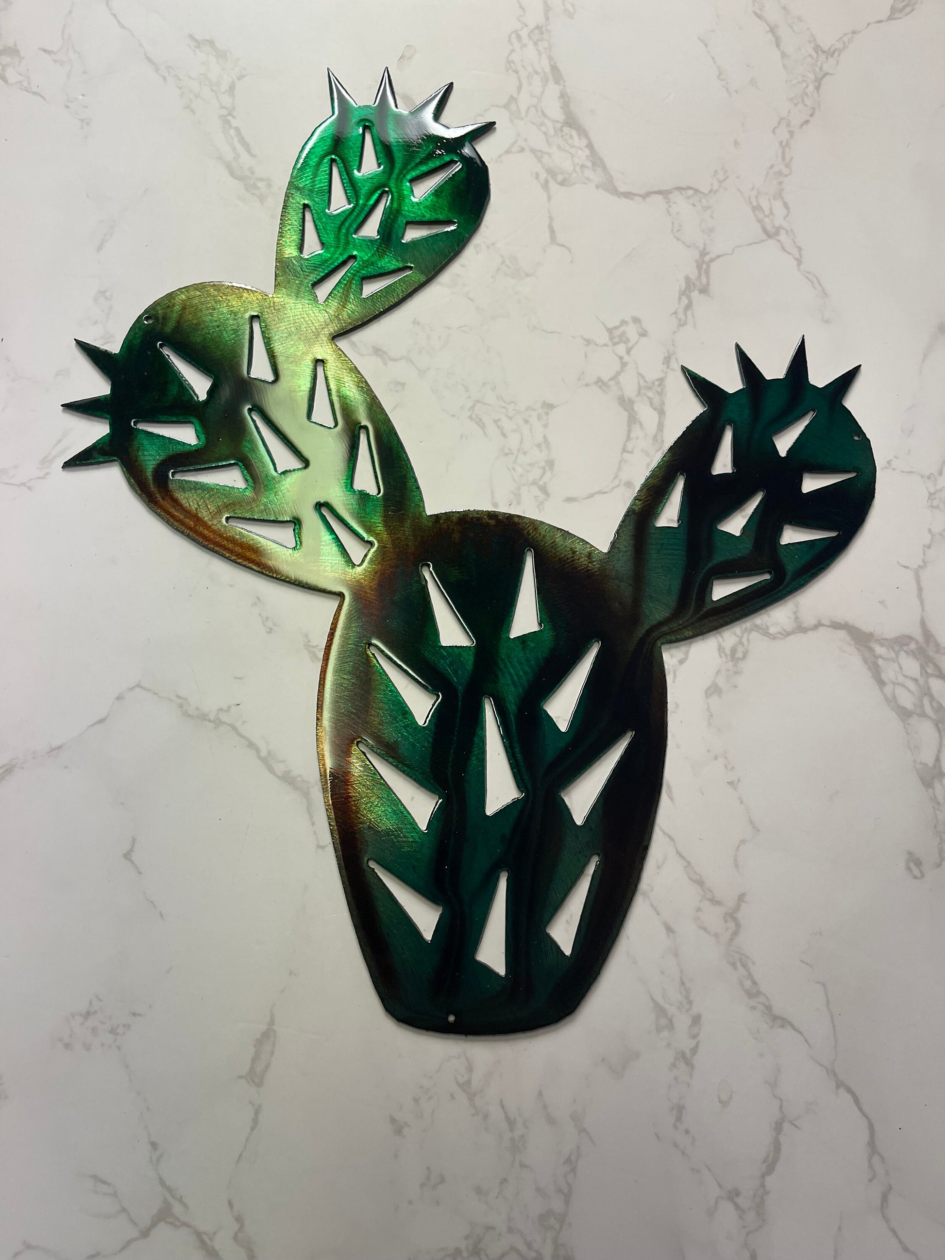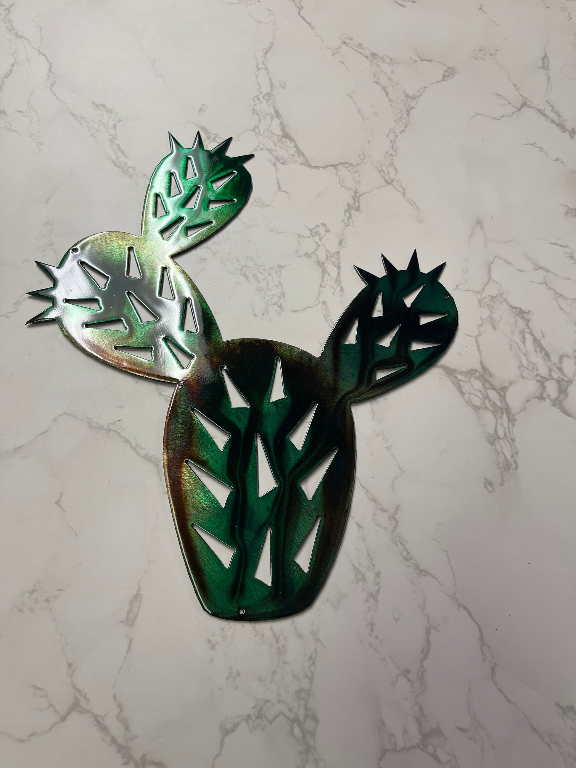 Prickly Pear Cactus Metal Wall Art Available in Two Sizes (Marbled Green Finish)