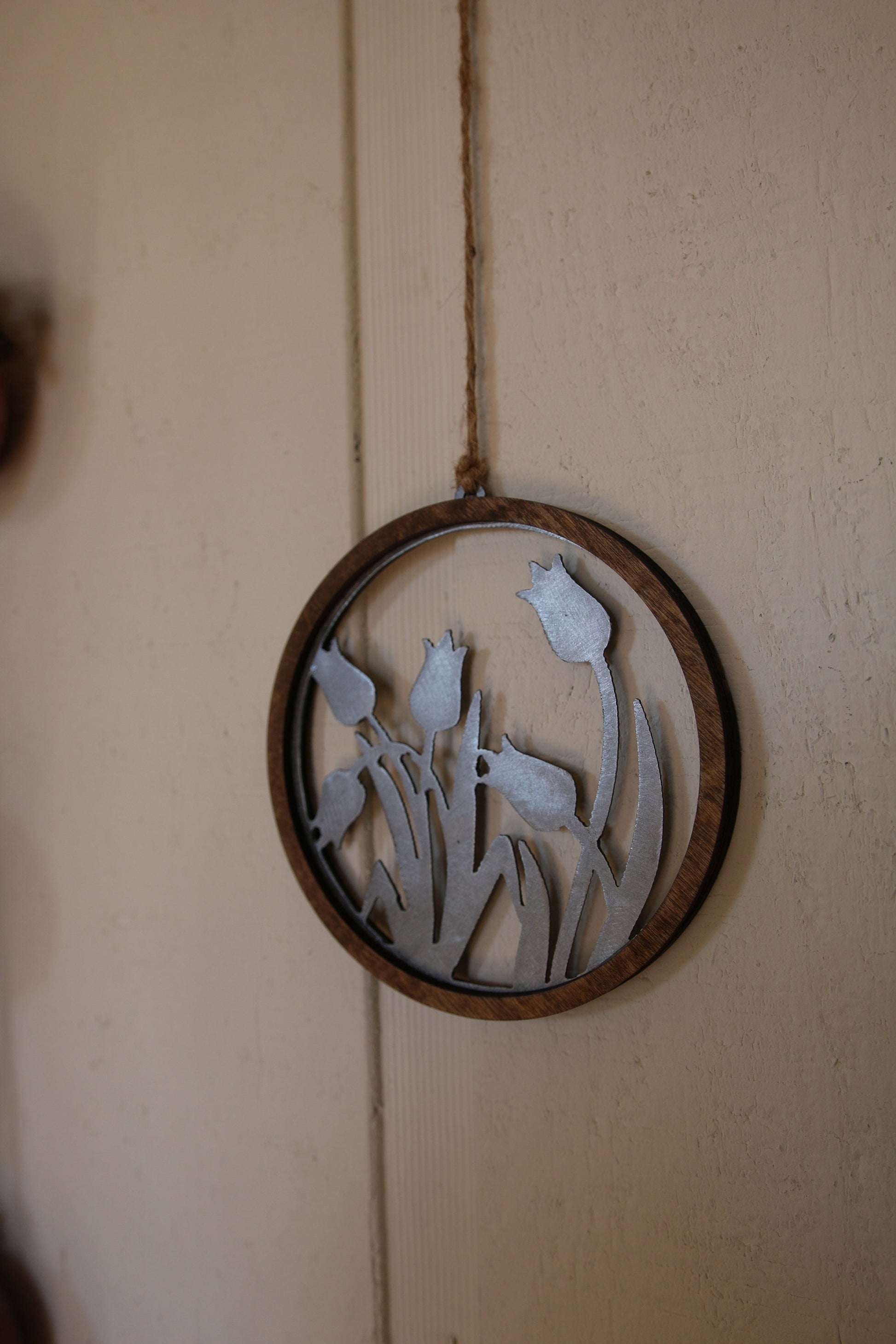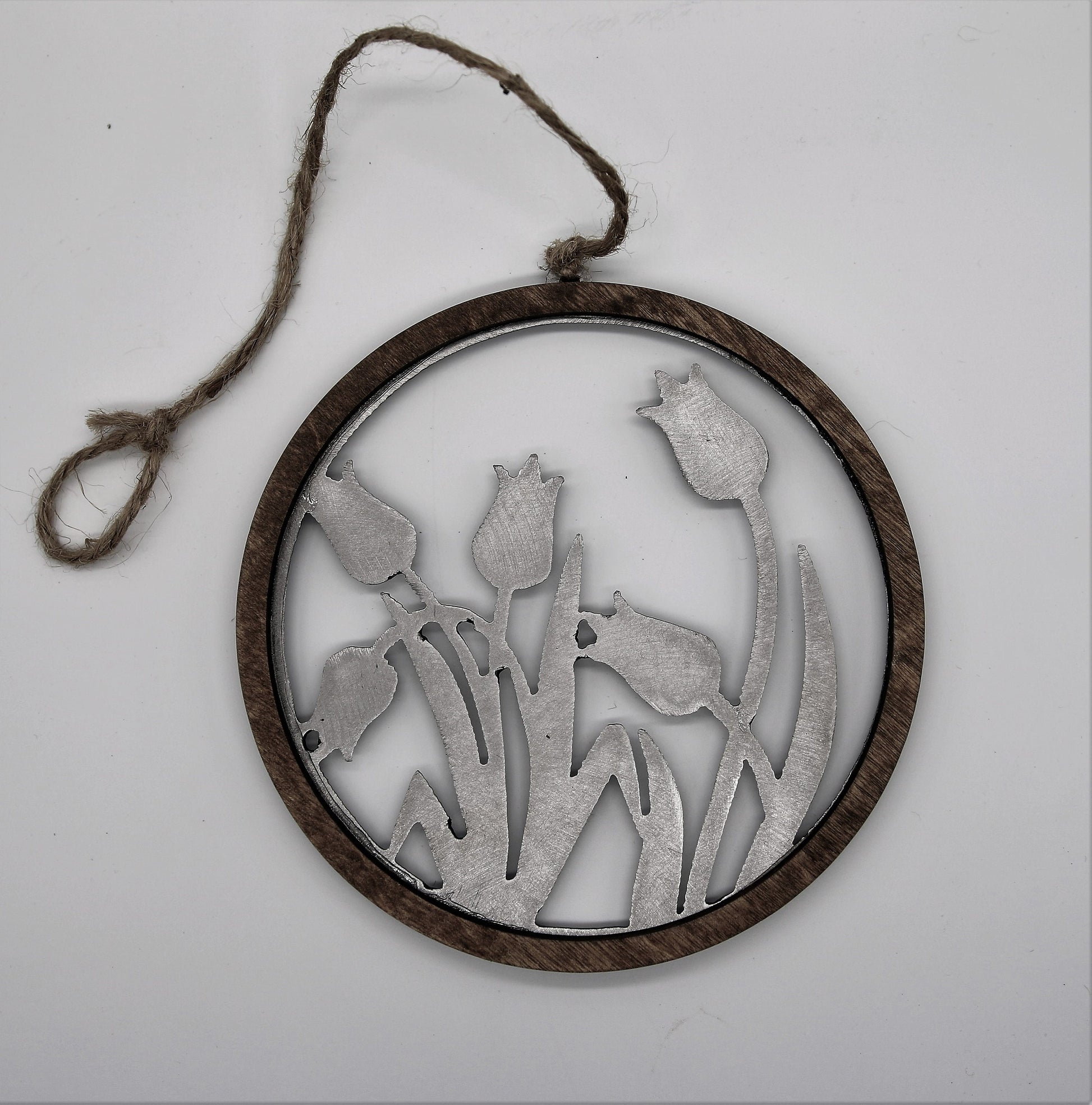 Rustic Wood and Metal Wall Accent or Sun Catcher Tulips!