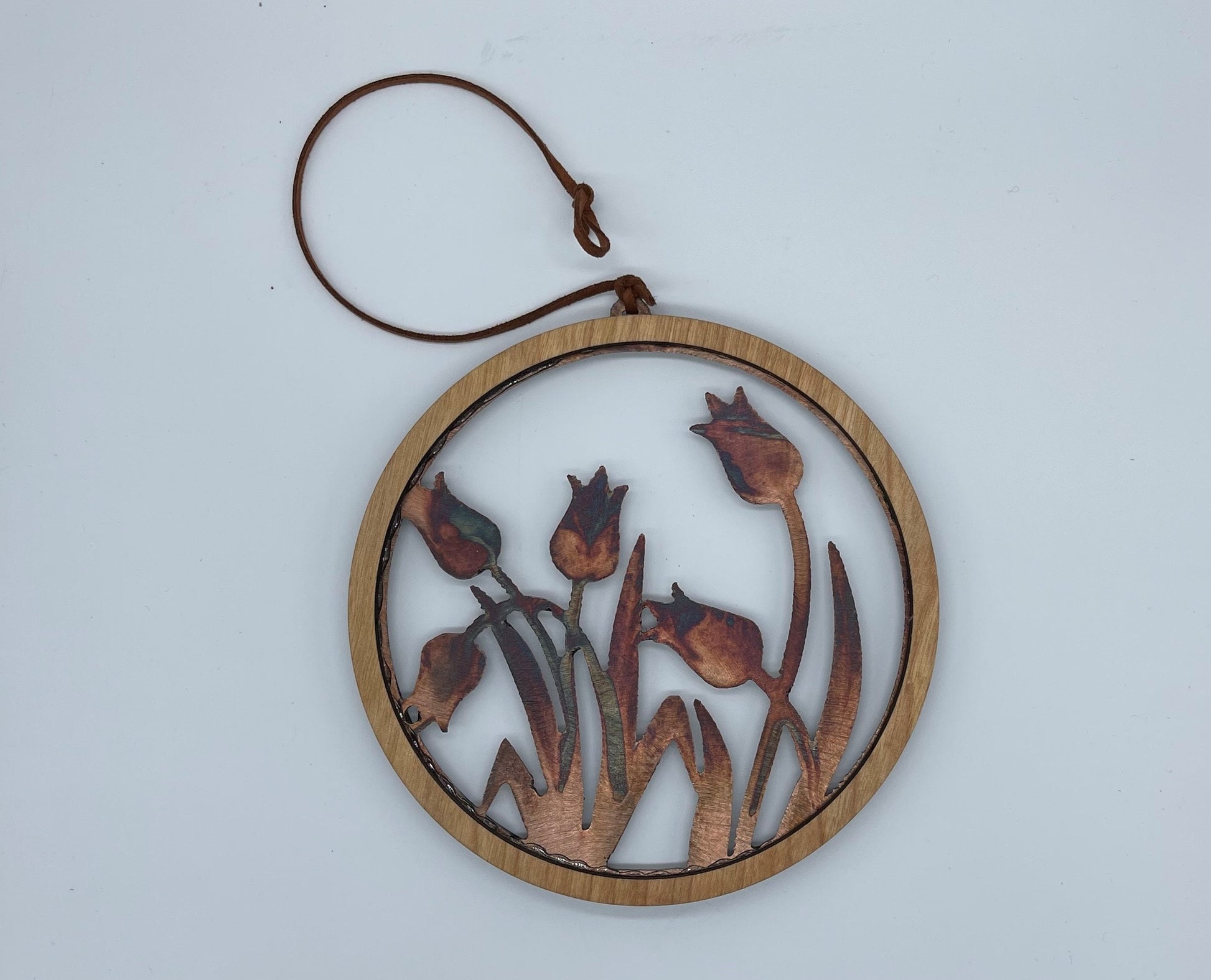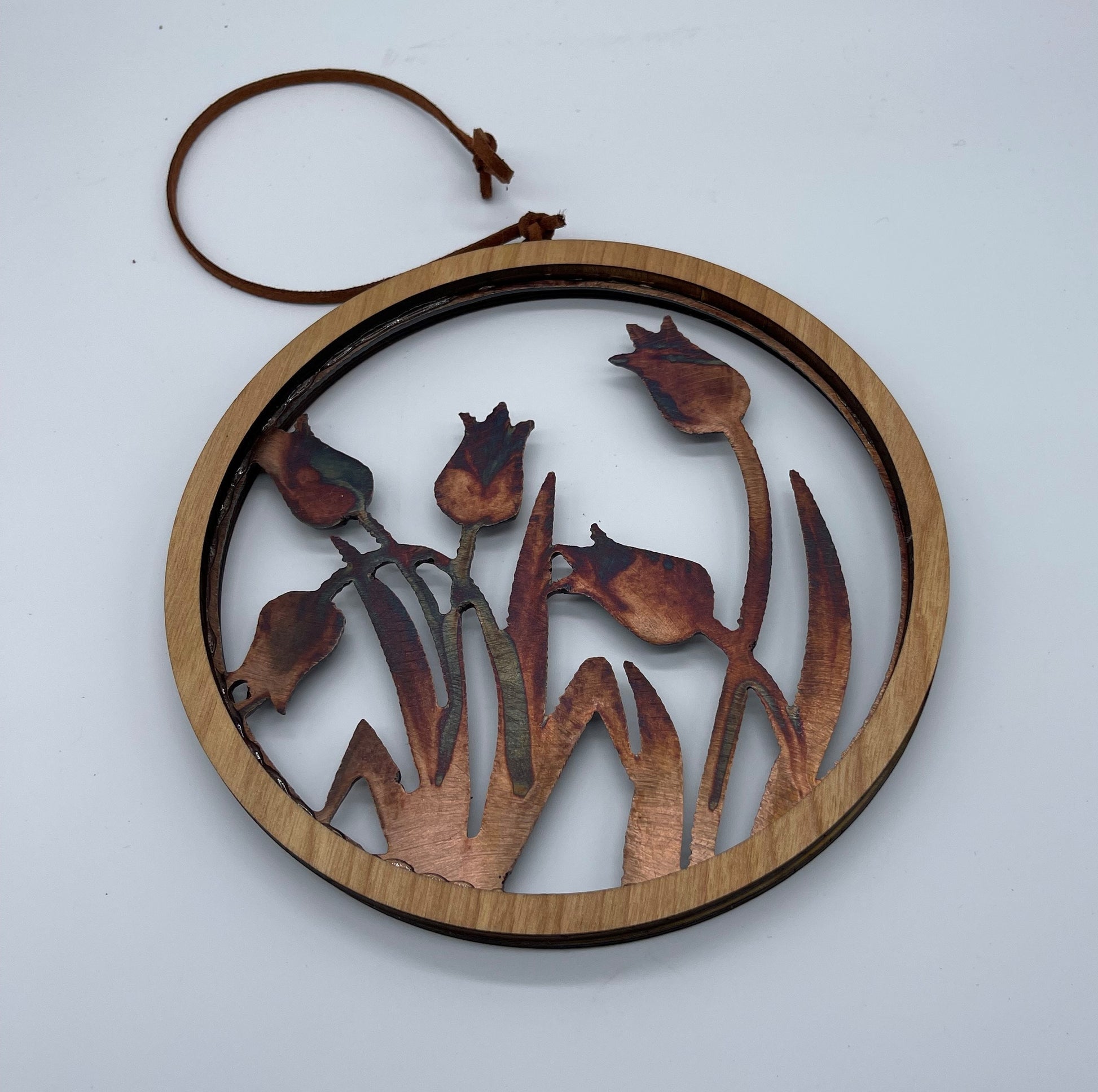 Rustic Wood and Metal Wall Accent or Sun Catcher Tulips! Copper Plated