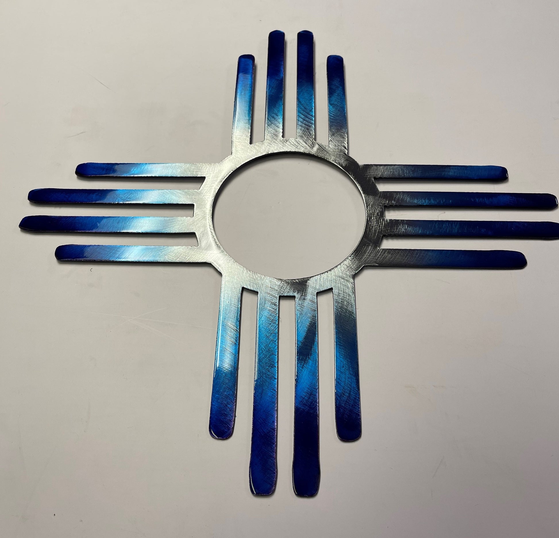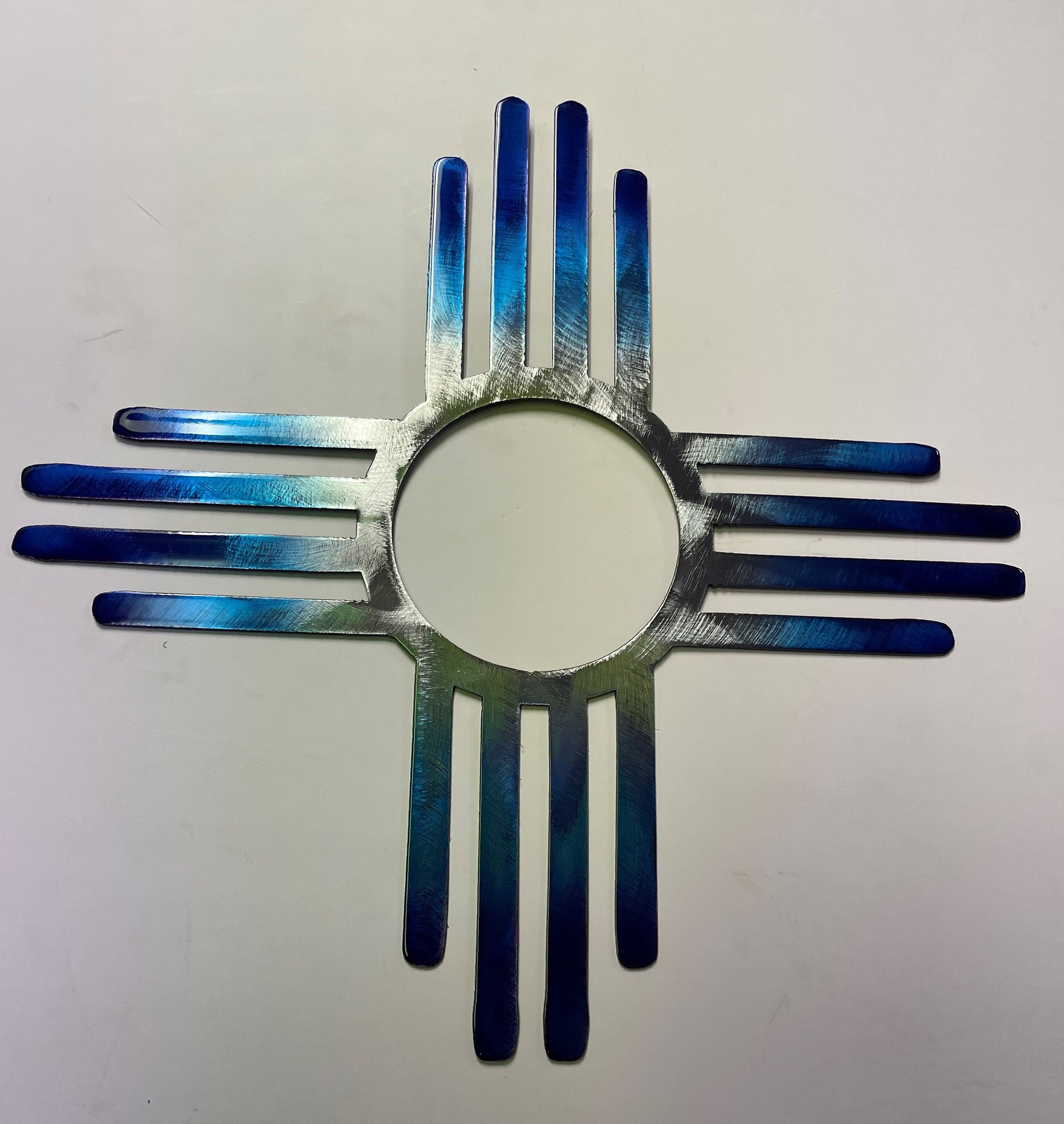 Made from mid gauge steel we polish and tinge in our specially created blue finish. Giving the Zia a unique look. Please note the paint is tinged and you will see silver on parts of the zia as well.