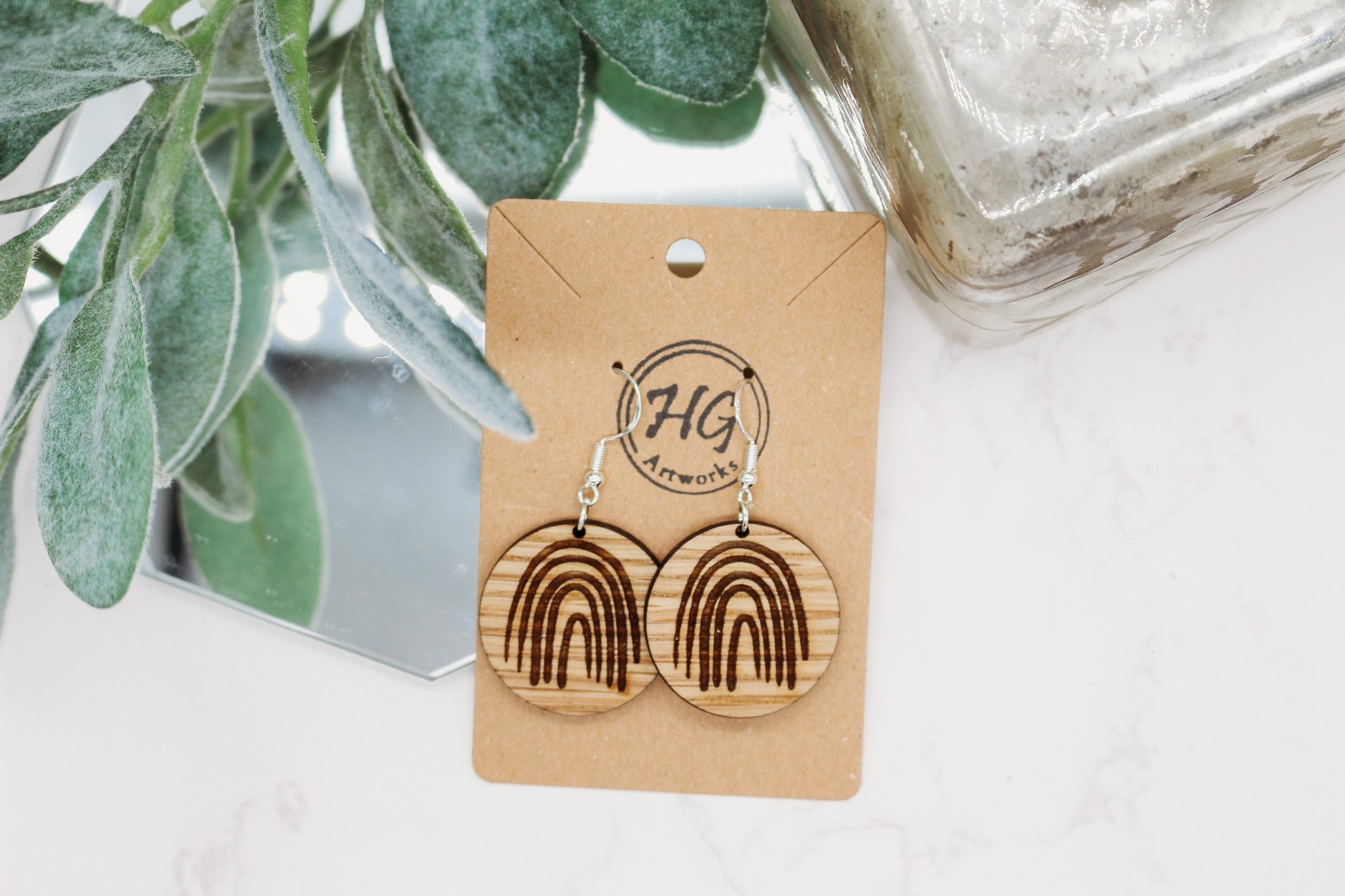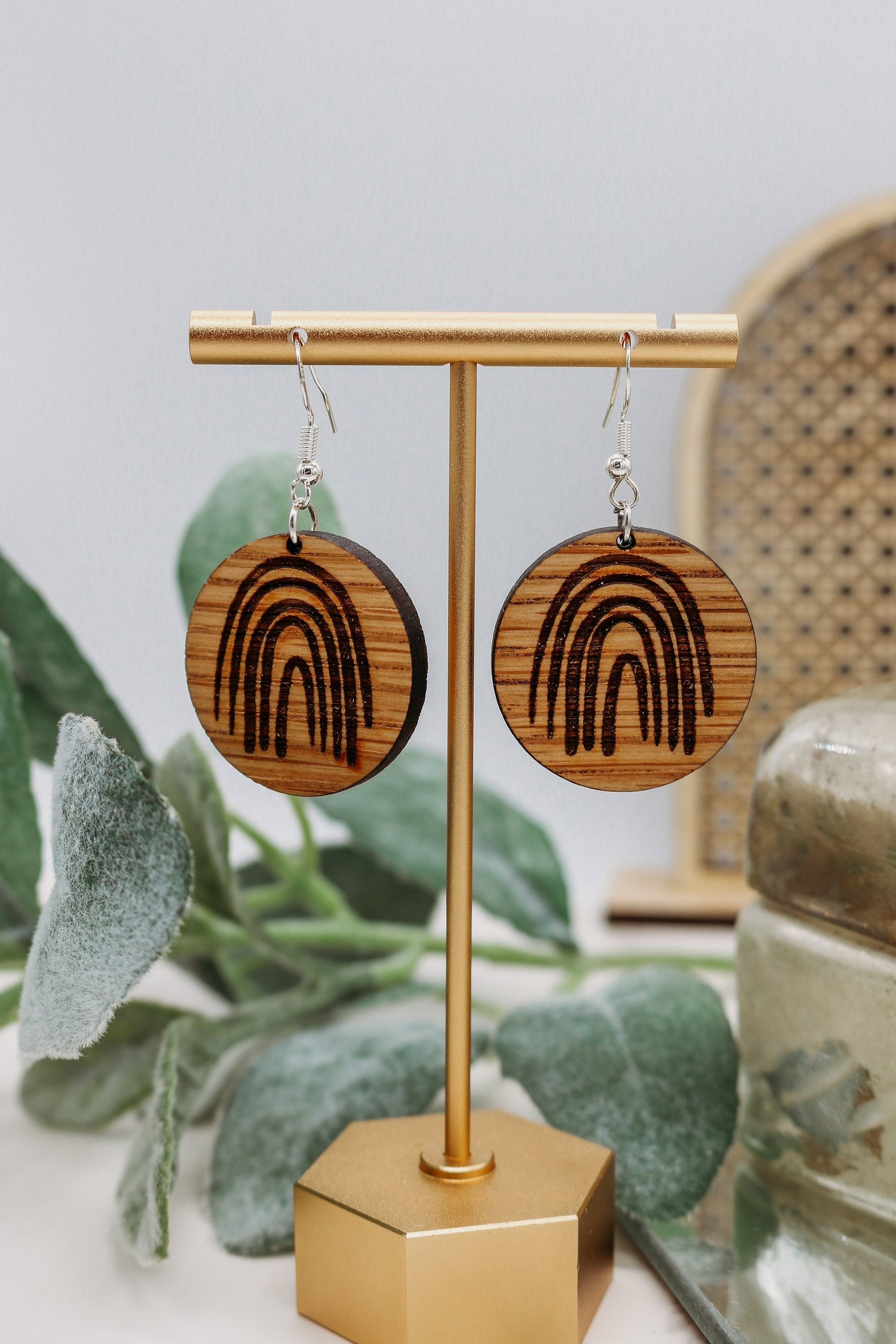 Wooden Rainbow Discs dangle Earrings | modern | boho | neutral