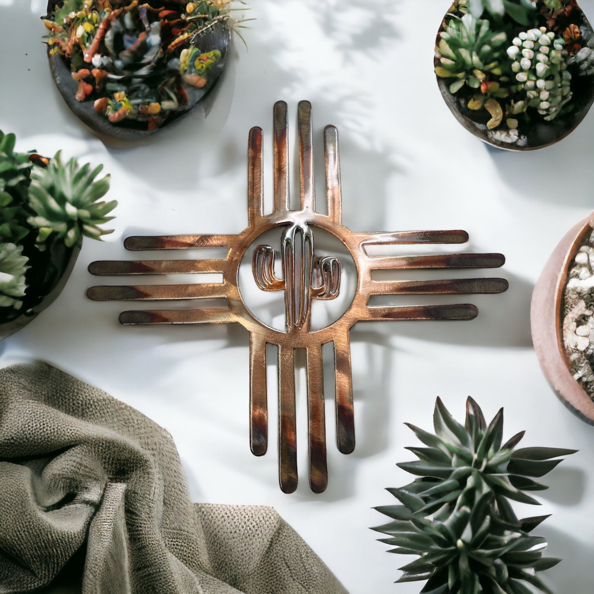 Zia Metal Wall Art Copper & Bronzed Plated with Cactus Center - Southwest Decor