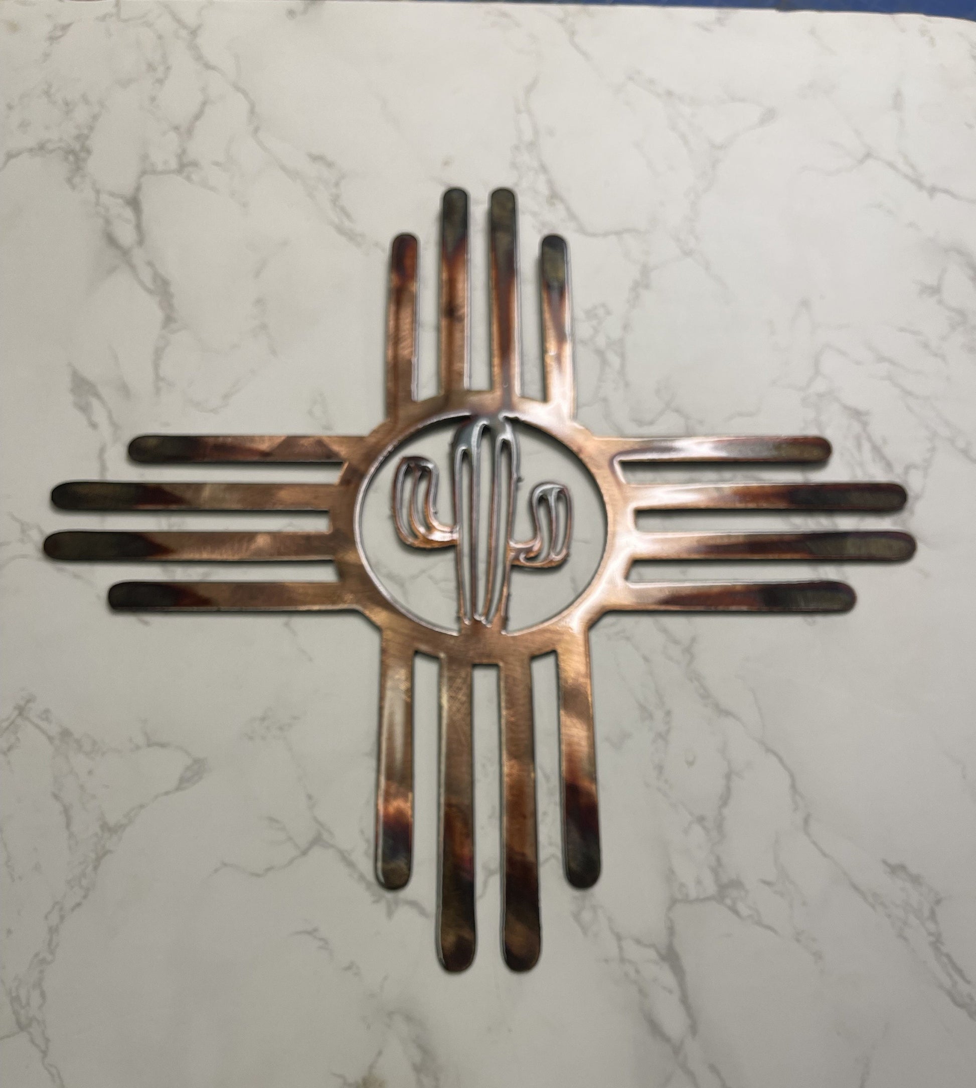 Add a touch of southwestern charm to your living space with our exquisite Zia Metal Wall Art. Handcrafted with precision, this stunning piece showcases the iconic Zia symbol, complemented by a captivating southwestern Cactus motif at its heart. The perfect fusion of culture and faith, this artful creation is sure to illuminate any room.
